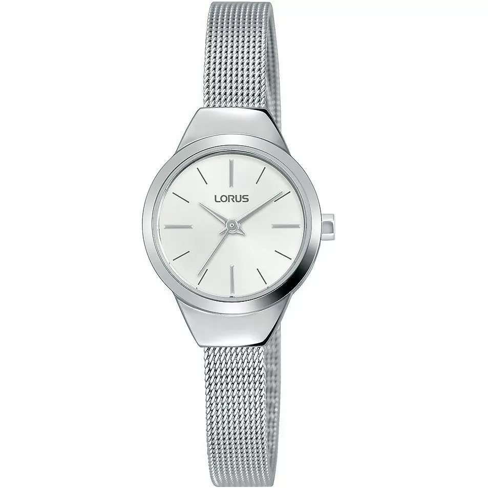 Zegarek damski Lorus RG219PX9 to stylowy model działający na mechanizmie kwarcowym, zasilanym przez baterię, który charakteryzuje się niskim odchyleniem w pomiarze czasu (zaledwie +/- 10 sekund w skali miesiąca). Został on ukryty pod elegancką tarczą w białym odcieniu, na której pełne godziny zostały oznakowane indeksy, poprawiające czytelność już na pierwszy rzut oka. Całość chroni odporne na delikatne przerysowania szkiełko mineralne, zamykające okrągłą kopertę o szerokości 22 mm. Obudowa ma grubość 7 mm, co zapewnia komfortowe użytkowanie w każdej sytuacji i została zaprojektowana tak, aby zapewnić 3 ATM wodoszczelności, znakomicie sprawdzające się w codziennym użytkowaniu. Rewelacyjnie prezentuje się połączenie srebrnej koperty ze stalową bransoletką typu mesh, przypominającą plecionkę, która daje możliwość regulacji obwodu zapięcia.