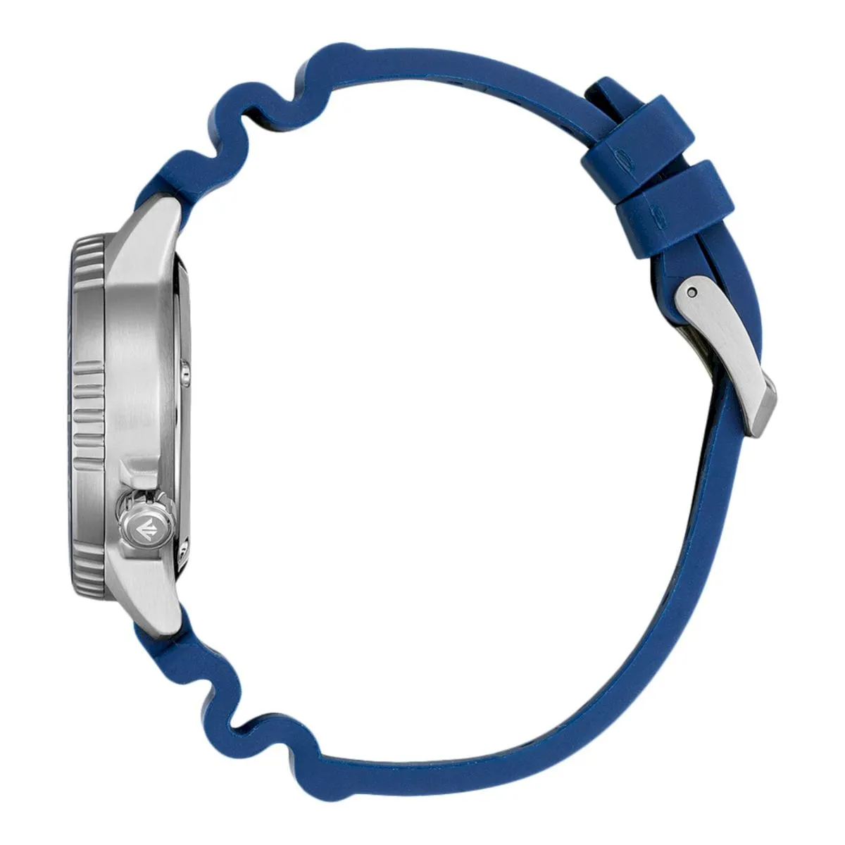 Koperta została wykonana z antyalergicznej stali szlachetnej, o jasnym wykończeniu, co doskonale współgra z granatową tarczą, na której za pomocą indeksów oznakowane zostały pełne godziny. Do niej dopasowano sportowy pasek. Wewnątrz obudowy został osadzony kwarcowy mechanizm, który napędzany jest przez energię słoneczną. Z tarczy poza wskazaniem aktualnej godziny można również odczytać jaki jest bieżący dzień miesiąca, kórego wskazanie zilustrowane zostało w okienku tuż obok miejsca wskazania godziny trzeciej. Kopertę zegarka Citizen EO2021-05L zamyka szkiełko mineralne, bardzo dobrze sprawdzające się w codziennym użytkowaniu. Model ten posiada 20ATM wodoszczelności, czyli wysoką szczelność na wodę, nawet podczas zanurzeń.