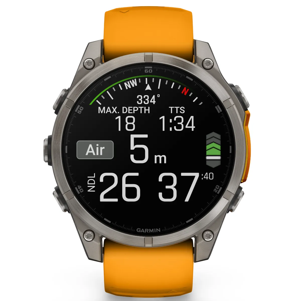 Ta wysokiej jakości, niezwykle wytrzymała konstrukcja jest przystosowana do nurkowania i posiada szczelne przyciski, metalową osłonę czujnika i jasny wyświetlacz AMOLED odporną na zarysowania soczewką i wzmacnianym bezelem. Zegarek jest zgodny z amerykańskimi normami wojskowymi dotyczącymi temperatury, wstrząsów i wodoodporności.