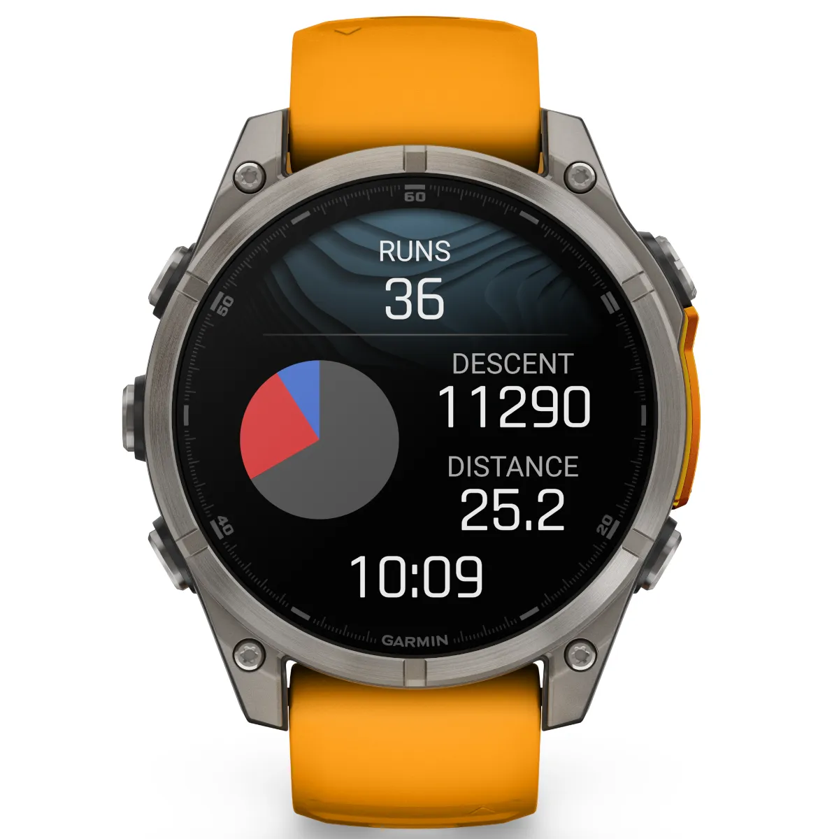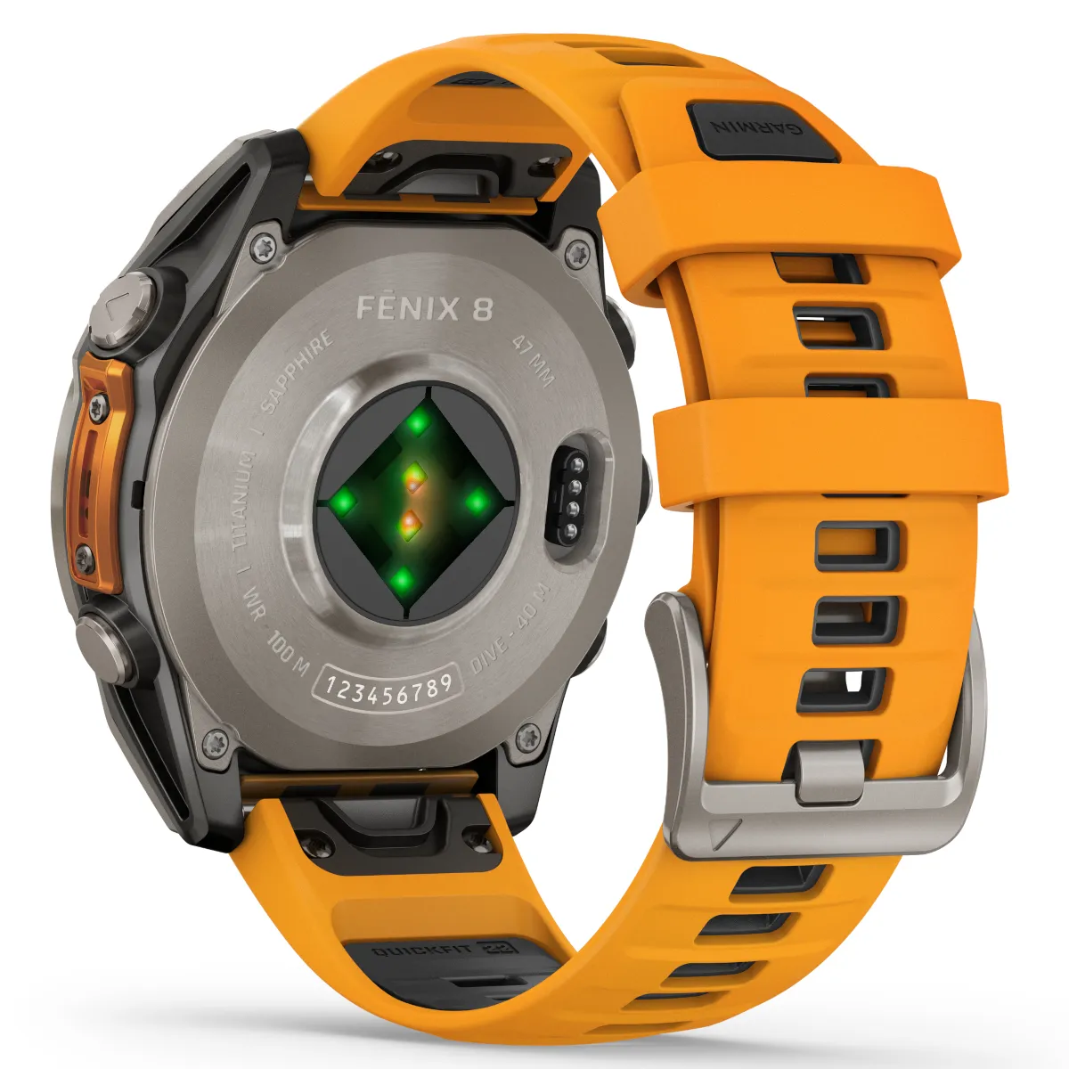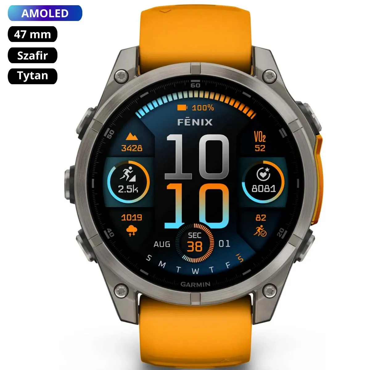 Dane techniczne Garmin Fenix 8 47 mm, AMOLED Sapphire, Tytanowy z paskiem silikonowym w kolorze Spark orange / Graphite (010-02904-11)