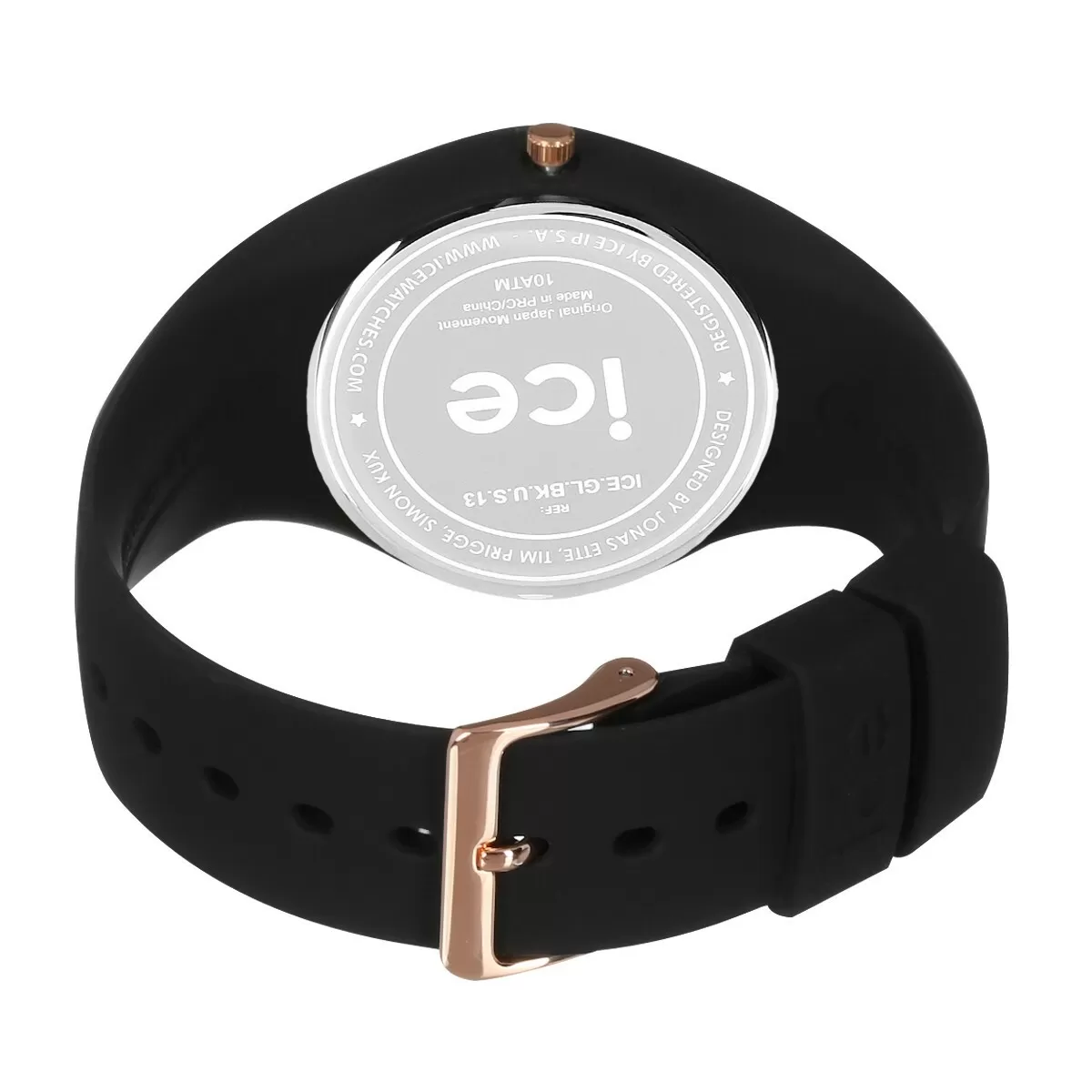 Piękny czasomierz, który doskonale sprawdzi się podczas codziennego użytkowania to marzenie każdej kobiety. Zegarek Ice Watch Ice Glam Black Rose Gold Unisex ICE.GL.BRG.S.S.14 000979 to propozycja belgijskiego producenta, która delikatnie podkreśli wygląd każdej stylizacji, a przy tym pozwoli użytkowniczce na czynności takie jak kąpiel, pływanie powierzchniowe cz też nurkowanie do kilku metrów, pod warunkiem, że podczas gdy zegarek jest zamoczony użytkowniczka powstrzyma się od manewrowania koronką. Koperta połączona z paskiem zostały wykonane z miękkiego tworzywa sztucznego w kolorze czarnym, które jest bardzo przyjemne w dotyku oraz świetnie dopasowuje się do nadgarstka zapewniając komfort w noszeniu. Wewnątrz koperty osadzono kwarcowy mechanizm, który zapewnia bardzo dokładne wskazania czasu, minimalizując ewentualne odchylenia od aktualnej godziny do jedynie 10 sekund w skali miesiąca. Serce zegarka Ice Watch ICE.GL.BRG.S.S.14  000979 zakrywa czarna tarcza na której osadzono wskazówki w kolorze różowego złota oraz napis ICE w tym samym odcieniu umiejscowiony w miejscu wskazania godziny trzeciej.