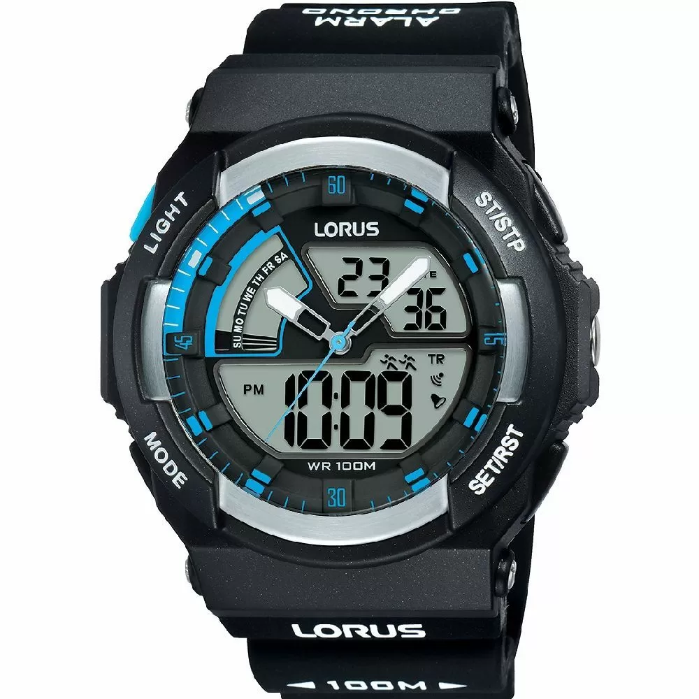Zegarek Lorus R2323MX9 to prosty model działający na mechanizmie kwarcowym, zasilanym przez baterię, który charakteryzuje się niskim odchyleniem w pomiarze czasu (zaledwie +/- 10 sekund w skali miesiąca). Został on ukryty pod czytelną tarczą, na której pełne godziny zostały oznakowane przez indeksy, poprawiające czytelność już na pierwszy rzut oka, a pod wskazówkami umieszczono wyświetlacz LCD. Całość chroni wysoce odporne na uderzenia i zbicie szkiełko pleksi, zamykające okrągłą kopertę o szerokości 50 mm. Obudowa ma grubość 18 mm, co zapewnia komfortowe użytkowanie w każdej sytuacji i została zaprojektowana tak, aby zapewnić 10 ATM wodoszczelności, która pozwala na pływanie z nurkowaniem. Model posiada analogowe - wskazówkowe - wskazanie czasu oraz wyświetlacz LCD i funkcje daty rozbudowanej z wiecznym kalendarzem, podświetlenie, stoper oraz alarm.