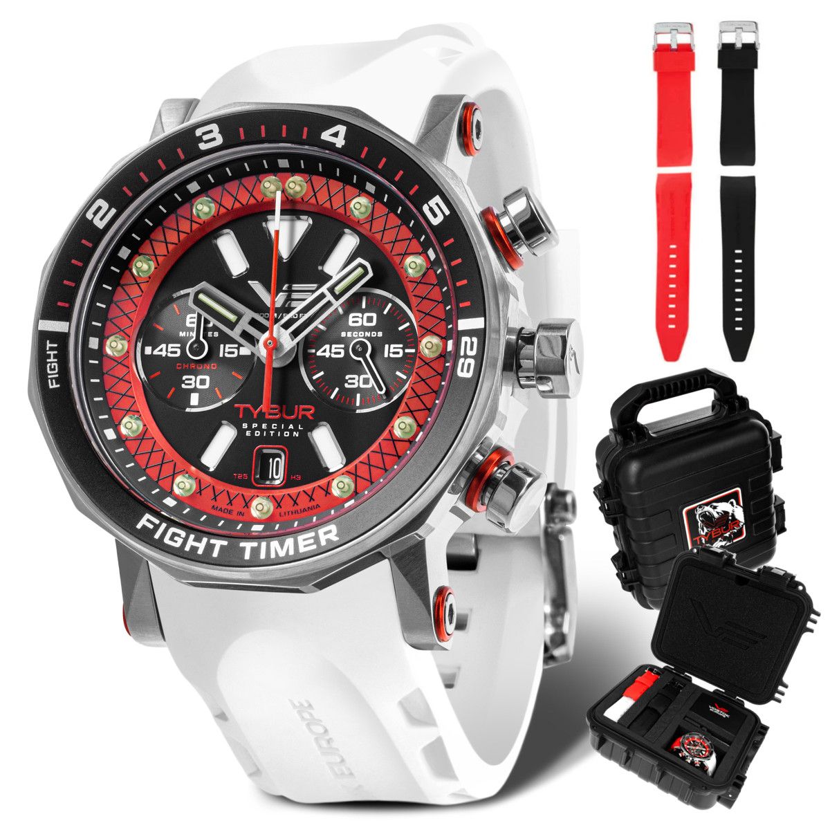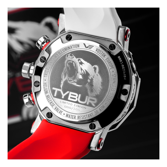 Vostok Europe z kolekcji Lunokhod-2, z linii Tybur, wyposażony w funkcje chronografu i datownika. Masywna obudowa wykonana ze stali szlachetnej, a w komplecie trzy paski silikonowe, a całość zapakowana w wodoszczelną skrzynkę VOSTOK w czarnym kolorze. Litewska marka znakomicie łączy nowoczesny design, historyczne osiągnięcia technologiczne i jakość na najwyższym poziomie. Świadczy o tym także wysoka wodoszczelność zegarka oraz wyposażenie go w zawór helowy.
