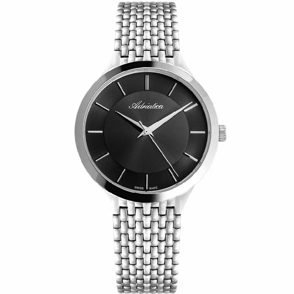 Koperta, o szerokości 39.00 mm, jaką posiada zegarek Adriatica A1276.5114Q wykonana została z antyalergicznej, odpornej na korozję, wysokiej jakości stali szlachetnej i ma kolor srebrny. Jej kształt jest okrągły i idealnie komponuje się z dopasowaną bransoletą, którego materiał wykonania - wysokiej jakości stal szlachetna  - gwarantuje komfortowe użytkowanie. Tarcza w tym modelu ma kolor czarny, a pełne godziny zostały oznakowane przez indeksy, dzięki czemu zegarek Adriatica A1276.5114Q jest czytelny. Tarczę tego czasomierza chroni szkło szafirowe, wysoce odporne na przerysowania. Ten zegarek szwajcarski posiada wodoszczelność chroniącą przed zachlapaniami i pozwalającą na powierzchwniowe wejście do wody- 5ATM.