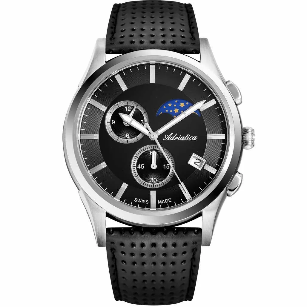 Zegarek Adriatica męski A8282.5214CH - szwajcarski zegarek z czarnym paskiem ze skóry