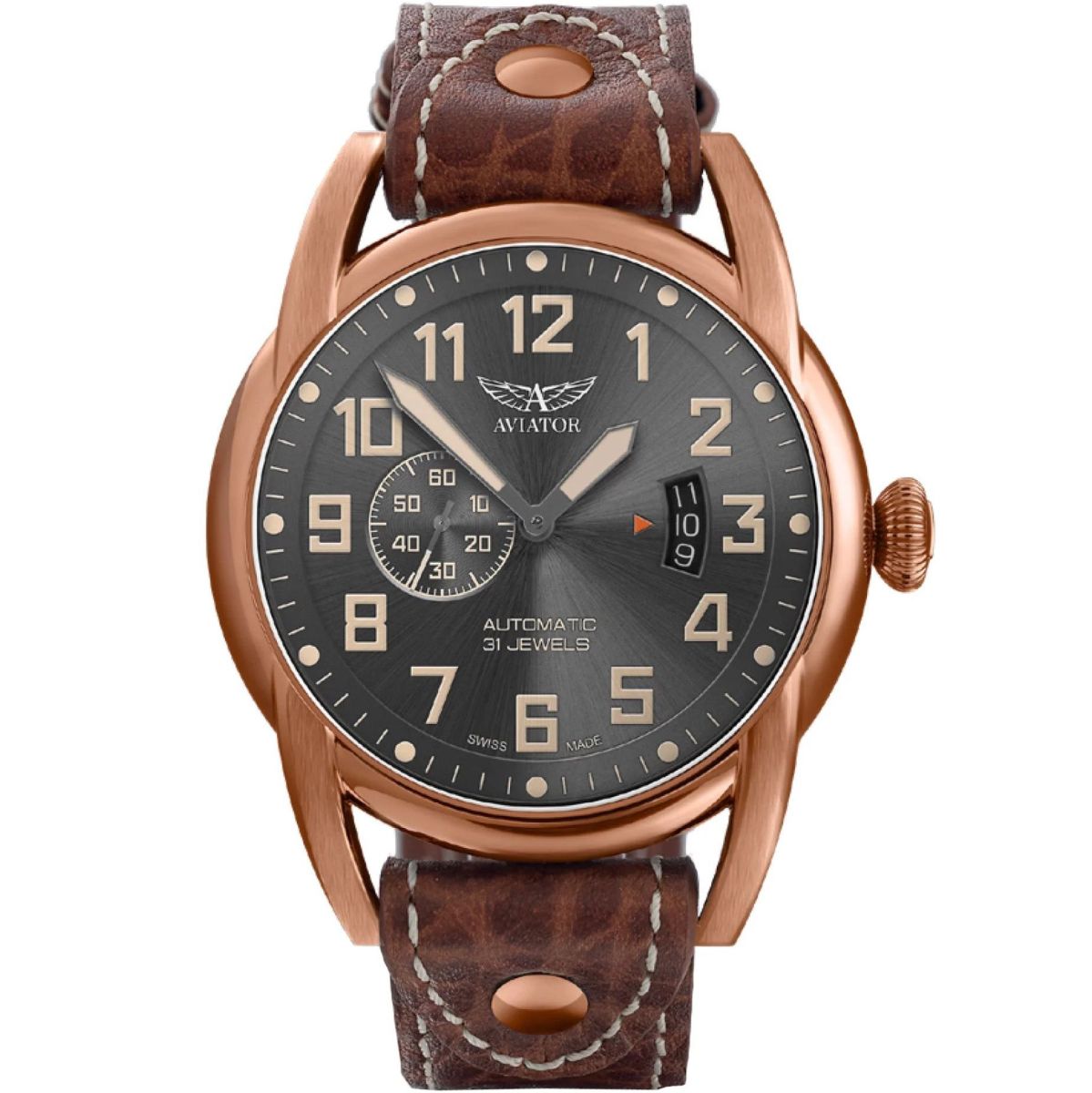 Zegarki Aviator to gwarancja precyzji, niezawodności i długowieczności dzięki zastosowaniu szwajcarskich mechanizmów i materiałów najwyższej jakości.