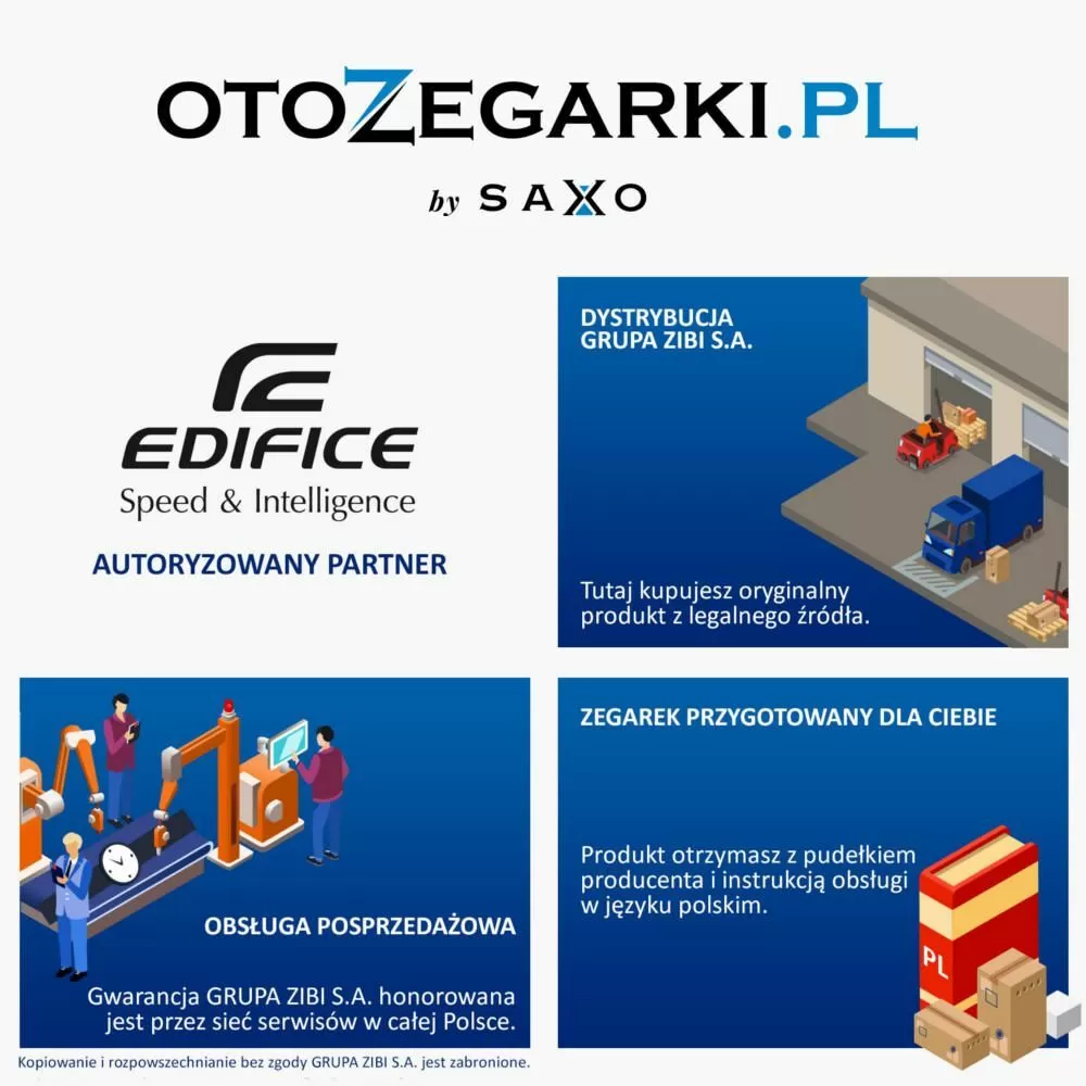 Zegarek Casio EFS-S500DB-2AVUEF z naszej oferty pochodzi z legalnej polskiej dystrybucji ZIBI, która także zapewnia serwisowanie w Polsce i dostęp do części. Przy zakupie w naszym sklepie otrzymujesz: