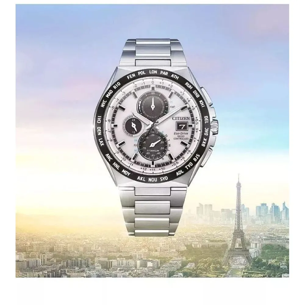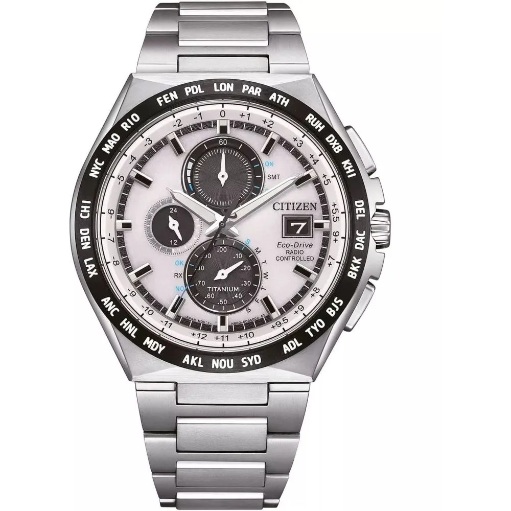 Zegarek męski Citizen AT8238-84A Radio Controlled Eco-Drive Titanium w srebrnym kolorze