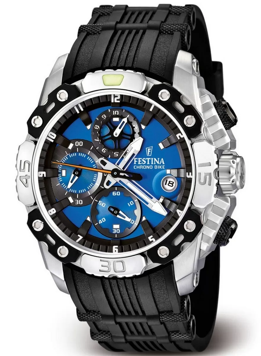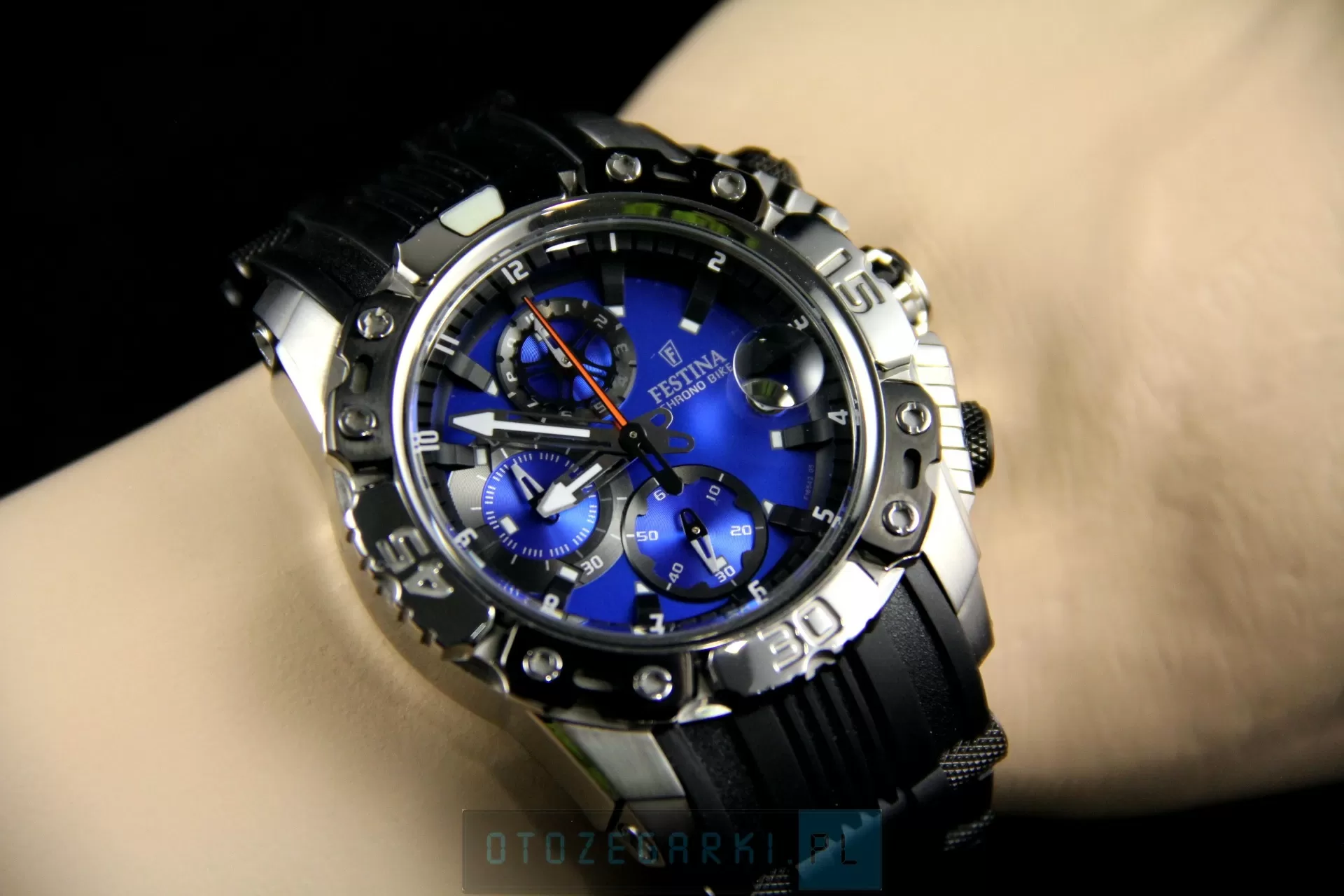 Co powiesz na urządzenia wyposażone w tarcze w kolorze czarnym, granatowym, białym lub różowym? Może uwielbiasz jeszcze jaśniejsze odcienie jak błękitny, żółty czy pomarańczowy? Przekonasz się, że wybór jest ogromny i zróżnicowany, na przykład w serii Festina Chronograph, która jest jedną z najpopularniejszych w całej ofercie hiszpańskiego producenta. Co ważne, wiele tarcz jest dwukolorowych, między innymi w modelach z serii Sport Diver.