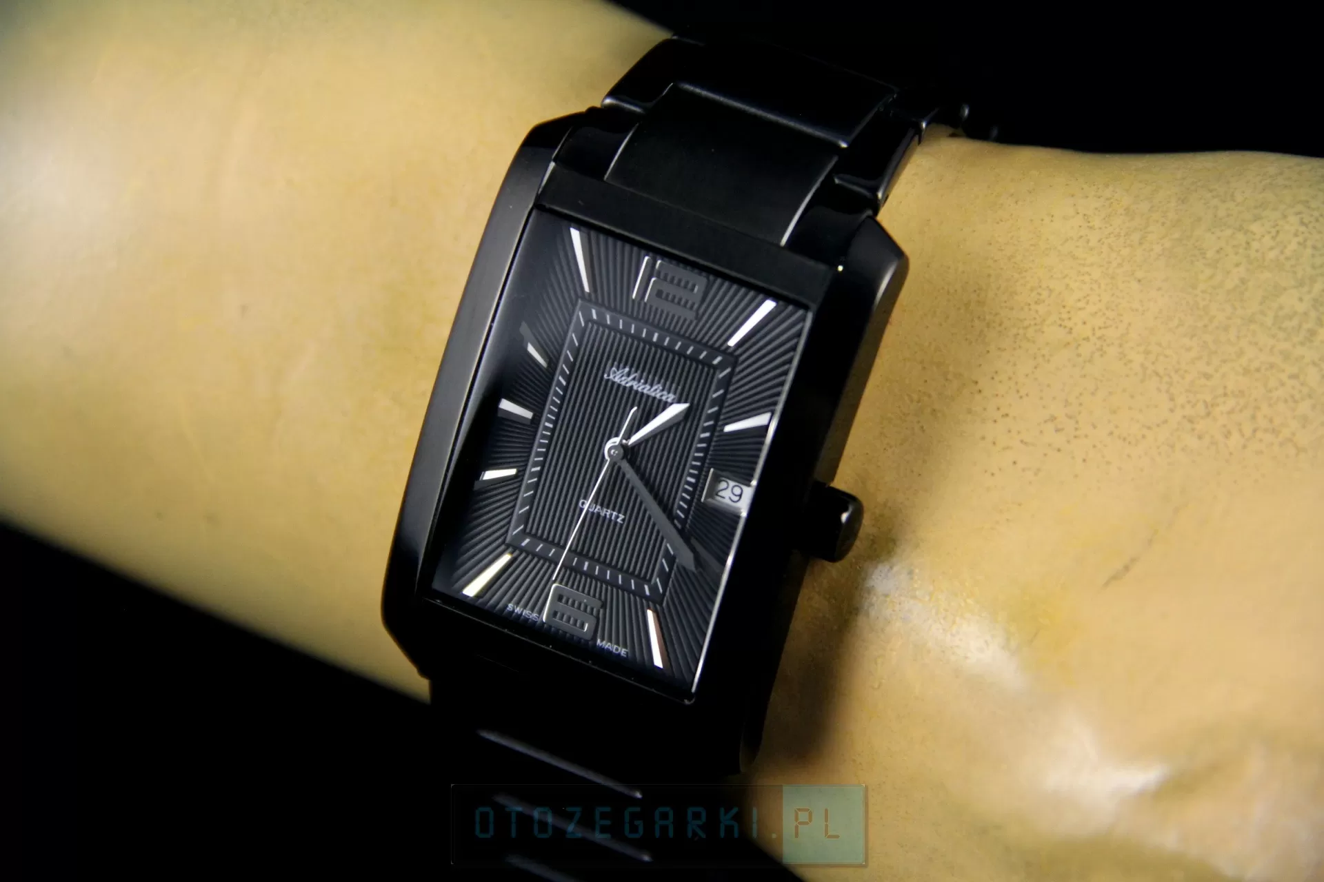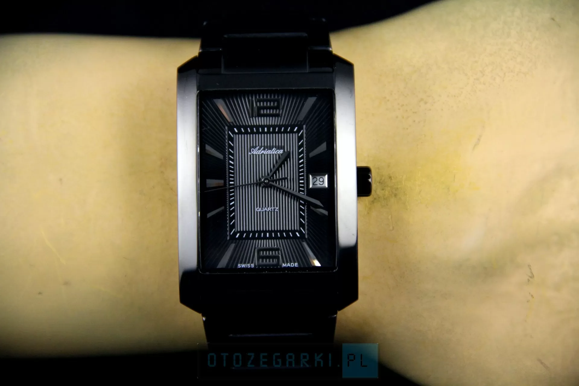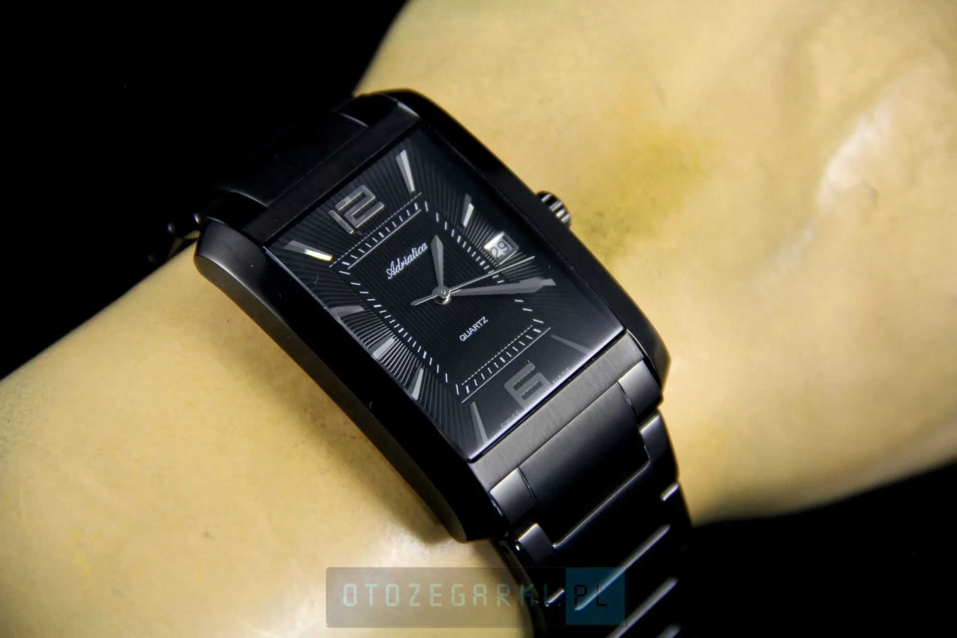 Zegarek męski Adriatica A1019.B154Q to elegancki produkt, wykonany z niezwykle ogromną dbałością o szczegóły. Jak wszystkie zegarki Adriatica, model A1019.B154Q został stworzony w oparciu o długoletnią historię zegarmistrzowską. Solidne, dokładne i niezawodne, takie właśnie muszą być zegarki męskie opatrzone logiem Swiss Made. Ten zegarek Adriatica, z linii A1019 działa na precyzyjnym mechanizmie kwarcowym, zasilanym za pomocą baterii, który charakteryzuje się wysoką dokładnością w pomiarze czasu - zakres tolerancji wynosi ok. +/- 15 sekund w przeciągu 30 dni. Koperta, o szerokości 32.00 mm, jaką posiada zegarek Adriatica A1019.B154Q wykonana została z antyalergicznej, odpornej na korozję, wysokiej jakości stali szlachetnej i ma kolor Czarny. Jej kształt jest Prostokątny i idealnie komponuje się z dopasowaną bransoletą, której materiał wykonania - stal szlachetna o wysokiej odporności - gwarantuje komfortowe użytkowanie. Tarcza w tym modelu ma kolor czarny, a pełne godziny zostały oznakowane przez indeksy i cyfry arabskie, dzięki czemu zegarek Adriatica A1019.B154Q jest czytelny. Tarczę tego czasomierza chroni szkło mineralne, odporne na delikatne przerysowania . Ten zegarek szwajcarski posiada wodoszczelność 3ATM - jest odporny na zachlapania np. Deszcz czy mycie rąk oraz funkcję datownika. Styl modeli z linii Adriatica A1019 można określić jako klasyczny, a ponadczasowy design sprawia, że są to idealne zegarki dla mężczyzn w każdym wieku. Zegarek męski Adriatica A1019.B154Q to wyprodukowany na bazie szwajcarskich technologii czasomierz, łączący w sobie gustowne wykonanie z najwyższą jakością.