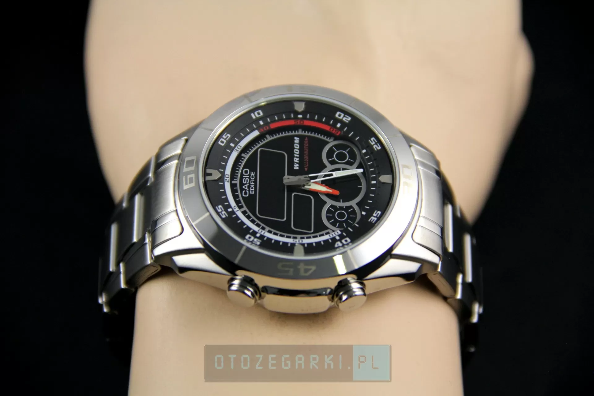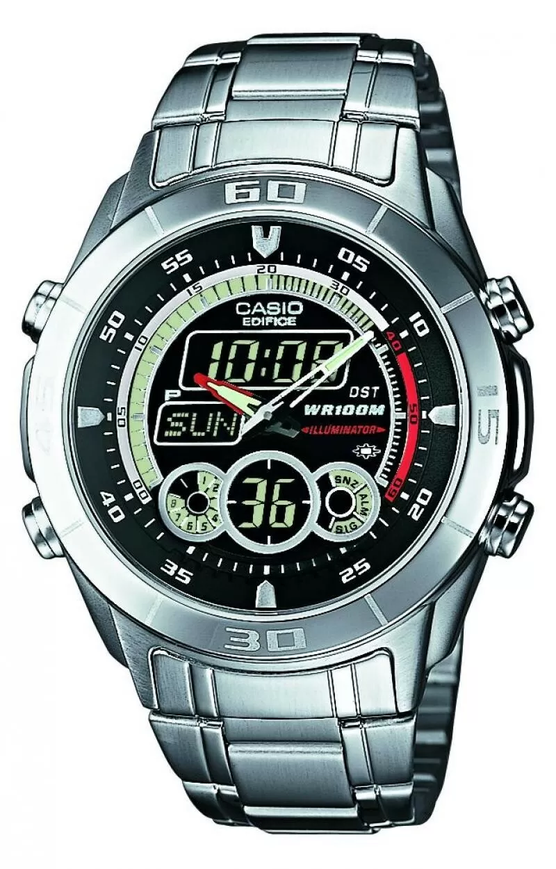 CASIO EFA-115D-1A1V Edifice. EDIFICE to linia sportowych zegarków marki CASIO. Design tej linii nawiązuje do motoryzacji ponieważ Edifice jest partnerem zespołu Red Bull Racing, a jest to jeden z najbardziej utytułowanych zespołów, który wielokrotnie triumfował w Forumule I, to najlepsze partnerstwo dla marki CASIO, bowiem zespół Red Bull Racing czterokrotnie zdobywał tytuł mistrza świata Formuły 1 w 2010, 2011, 2012 oraz z 2013 roku. Wszystkie zegarki tej linii w tym prezentowany model EFA-115D-1A1V, mają 10 atmosfer wodoszczelności, a ich koperty i bransolety wykonane są z najwyższej jakości stali szlachetnej.