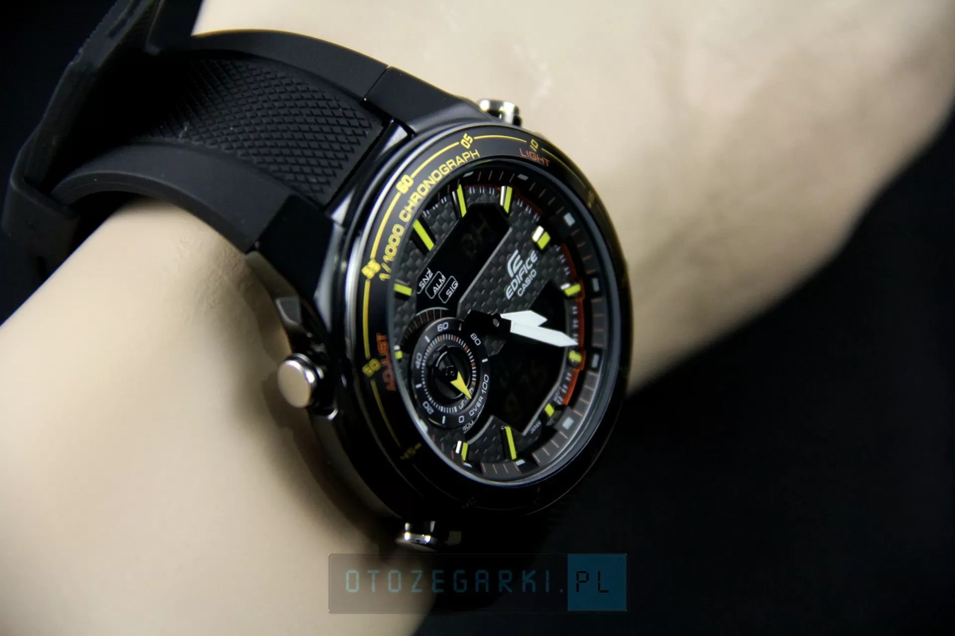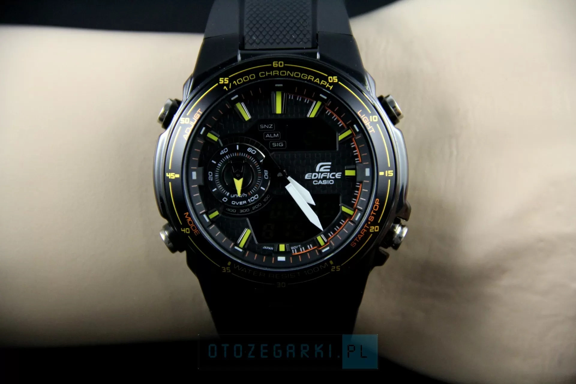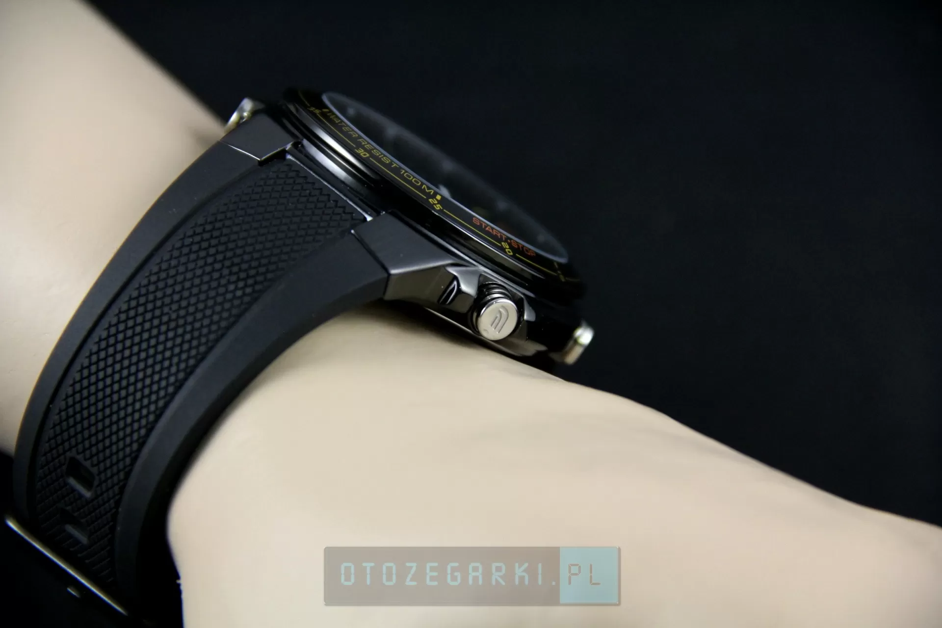 CASIO EFA-131PB-1AVEF Edifice. EDIFICE to linia sportowych zegarków marki CASIO. Design tej linii nawiązuje do motoryzacji ponieważ Edifice jest partnerem zespołu Red Bull Racing, a jest to jeden z najbardziej utytułowanych zespołów, który wielokrotnie triumfował w Forumule I, to najlepsze partnerstwo dla marki CASIO, bowiem zespół Red Bull Racing czterokrotnie zdobywał tytuł mistrza świata Formuły 1 w 2010, 2011, 2012 oraz z 2013 roku. Wszystkie zegarki tej linii w tym prezentowany model EFA-131PB-1AVEF, mają 10 atmosfer wodoszczelności, a ich koperty i bransolety wykonane są z najwyższej jakości stali szlachetnej.