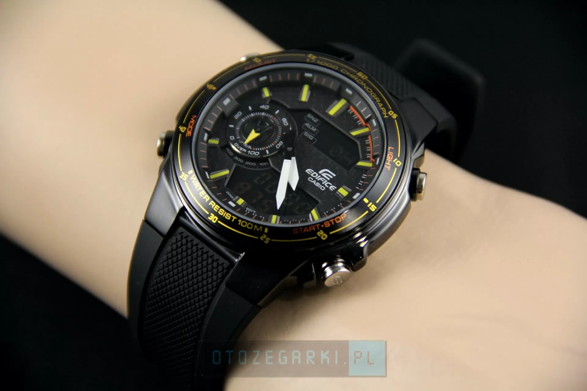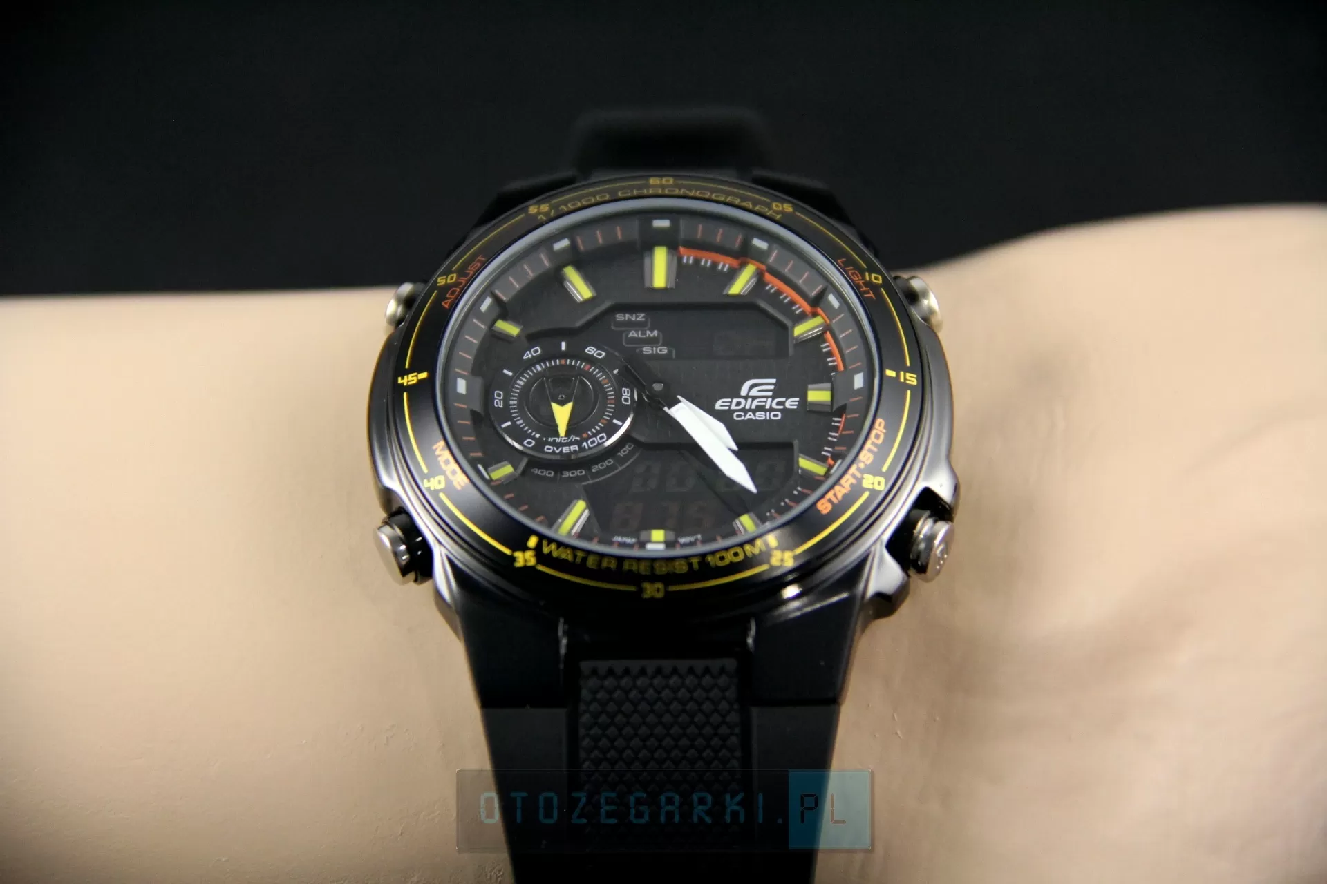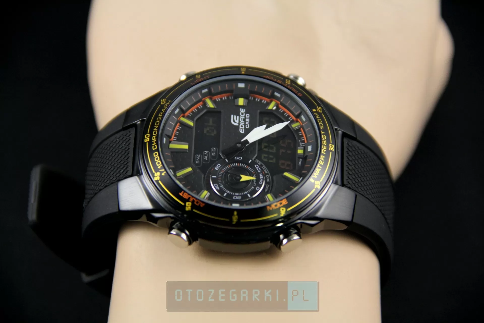 CASIO EFA-131PB-1AVEF Edifice. EDIFICE to linia sportowych zegarków marki CASIO. Design tej linii nawiązuje do motoryzacji ponieważ Edifice jest partnerem zespołu Red Bull Racing, a jest to jeden z najbardziej utytułowanych zespołów, który wielokrotnie triumfował w Forumule I, to najlepsze partnerstwo dla marki CASIO, bowiem zespół Red Bull Racing czterokrotnie zdobywał tytuł mistrza świata Formuły 1 w 2010, 2011, 2012 oraz z 2013 roku. Wszystkie zegarki tej linii w tym prezentowany model EFA-131PB-1AVEF, mają 10 atmosfer wodoszczelności, a ich koperty i bransolety wykonane są z najwyższej jakości stali szlachetnej.