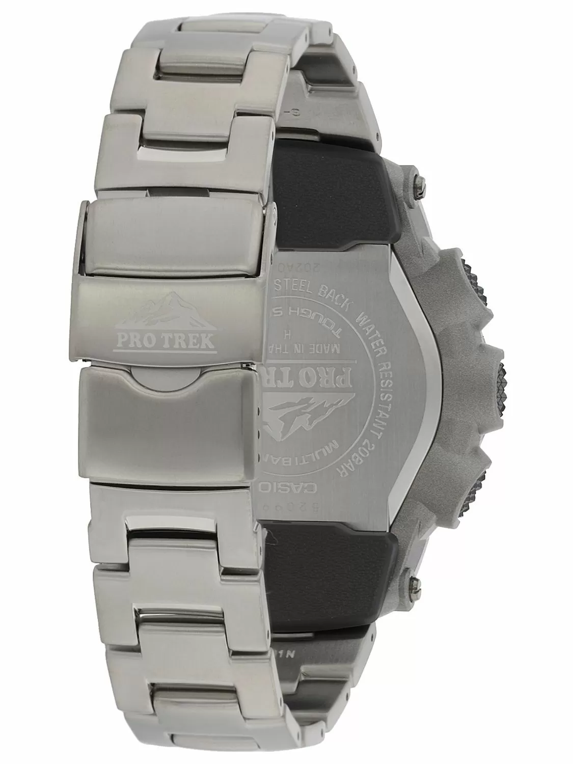CASIO PRW-3500T-7ER ProTrek. Kolekcja CASIO PROTREK to zegarki zaawansowane technologicznie dla aktywnych ludzi. Wyposażone są w funkcje, które przydają się w dalekich podróżach i ekstremalnych wyprawach. Technologiczne nowinki dodają możliwości i wypełniają oczekiwania ludzi pragnących wykorzystywać te zegarki w swoich ekstremalnych podróżach. Model PRW-3500T-7ER należący do kolekcji Pro Trek posiada w standardzie takie rodzaje sensorów jak: miernik temperatury, barometr, wysokościomierz, kompas elektroniczny Każdy, kto wspina się na Mount Cook, najwyższą górę w Nowej Zelandii, będzie dumny, gdy zdobędzie szczyt o wysokości 3754m. n.p.m. Pro Trek PRW-3500 o tej samej nazwie, ma wszystkie funkcje, które sa niezbędne do wycieczek na tą górę, bądź inne szczyty. Nowość z 2013r. posiada Wave Ceptor, który pozwala na synchronizację zegara z nadajnikami umieszczonymi w Europie, USA, Japonii i Chinach. Panel słoneczny eliminuje problem wymiany baterii oraz posiada wskaźnik naładowania, a wysoka szczelność 20 ATM i odporność na niskie temperatury do -10°C pozwalają korzystać w zegarka nawet w ekstremalnych warunkach. Zegarek posiada cyfrowy kompas, który wskazuje magnetyczną północ, wysokościomierz, który poprzez zmianę ciśnienia atmosferycznego wskazuje wysokość do 10000 n.p.m., ma możliwość zapamiętywania danych wysokościomierza aż do 30 wskazań wraz z datą i godziną, które mogą być w dowolnym momencie przywołane oraz pamięć maksymalnej i minimalnej wysokości a także sumy wysokości, które osiągnął użytkownik w danym sezonie, w czasie całej wycieczki; barometr w zakresie 260 - 1100 hPa wraz ze wskazaniem trendów zmiany ciśnienia, termometr mierzący od -10°C do +60°C. Po wprowadzeniu danych dotyczących geograficznego położenia zegarek może wskazywać godzinę wschodu i zachodu słońca dla różnych dat. Oprócz tego posiada standardowe funkcje jak wskazanie czasu dla różnych stref czasowych i miast, stoper (odmierzający do 1000 godzin, z dokładnością do 1/100sek.), timer (dwudziestoczterogodzinny), pięć niezależnych alarmów, z drzemką oraz automatyczny, wieczny kalendarz. W modelu PRW-3500 zastosowano trzecią wersję Casio Triple Sensor odpowiadającą za potrójny sensor zegarka. Zaawansowana technologia pozwoliła na zastosowanie 95% mniejszego czujnika kierunku i o 90% zmniejszenie zużycia energii przez sensor w porównaniu do wcześniejszych modeli. Pomimo mniejszych rozmiarów nowy sensor w tym modelu pozwala na lepszą dokładność i efektywność energetyczną. Model przystosowany jest do korzystania w czasie przygód na wolnym powietrzu, a niezależnie od tego, czy w ciemności, czy w gęstej mgle lub śniegu, kontrastowy wyświetlacz cyfrowy z pełnym, automatycznym podświetleniem LED wyraźnie wyświetli wszystkie funkcje.