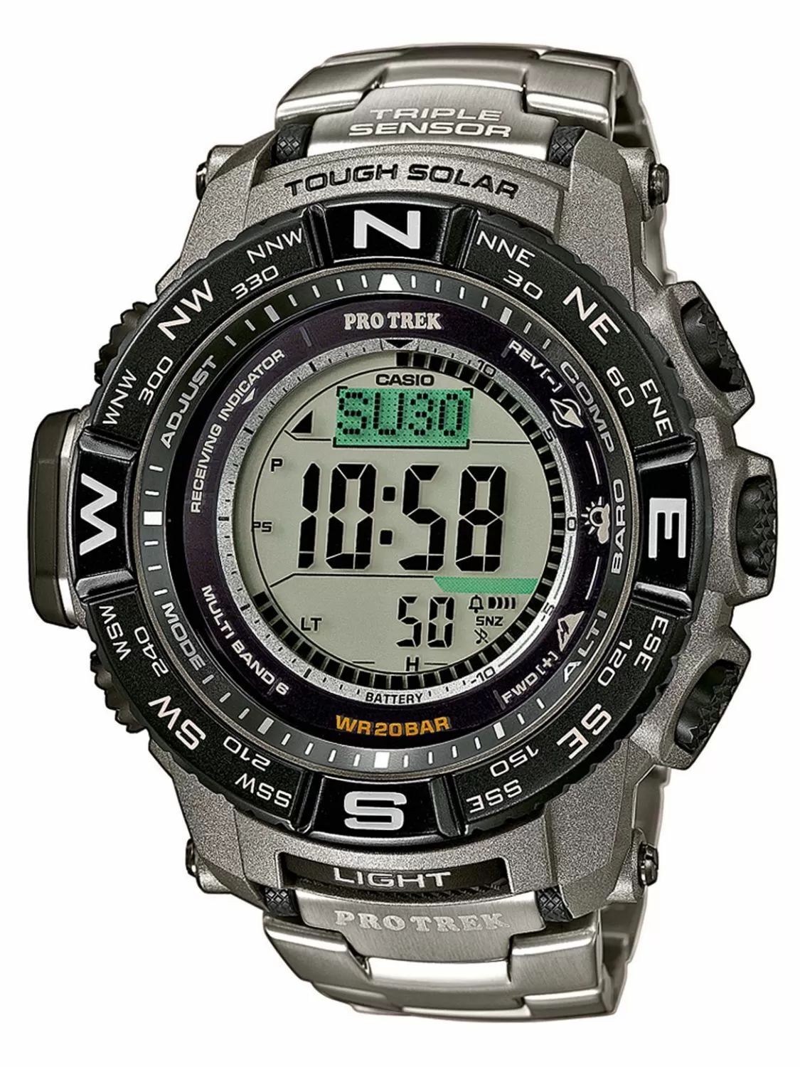 Funkcje Alarm , Barometr , Czas światowy , Datownik , Kompas , Panel słoneczny , Podświetlenie , Prognoza pogody , Radiocontrol , Stoper , Termometr , Timer , Wieczny kalendarz , Wysokościomierz