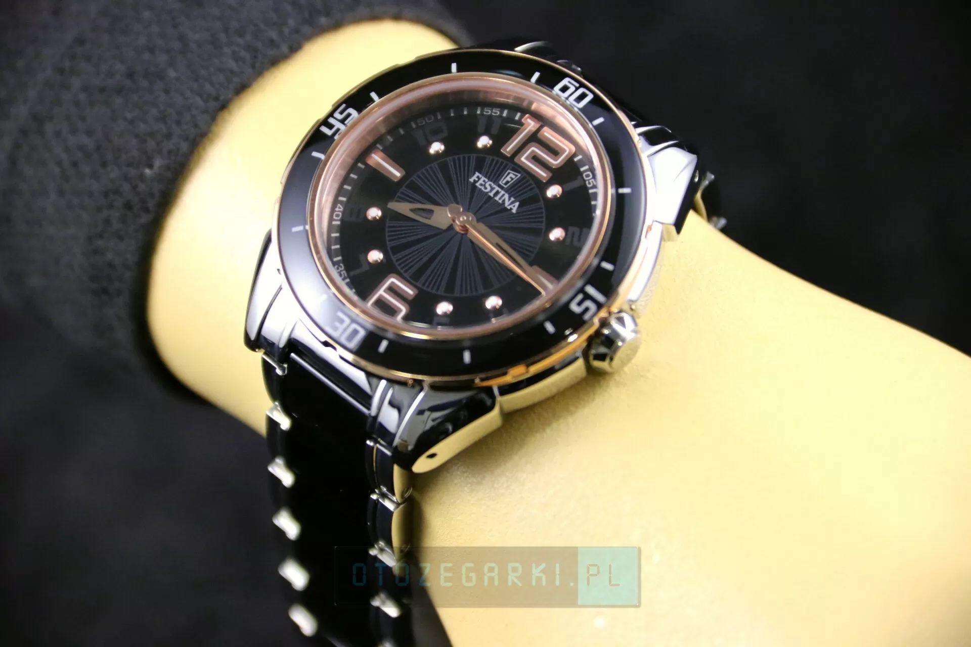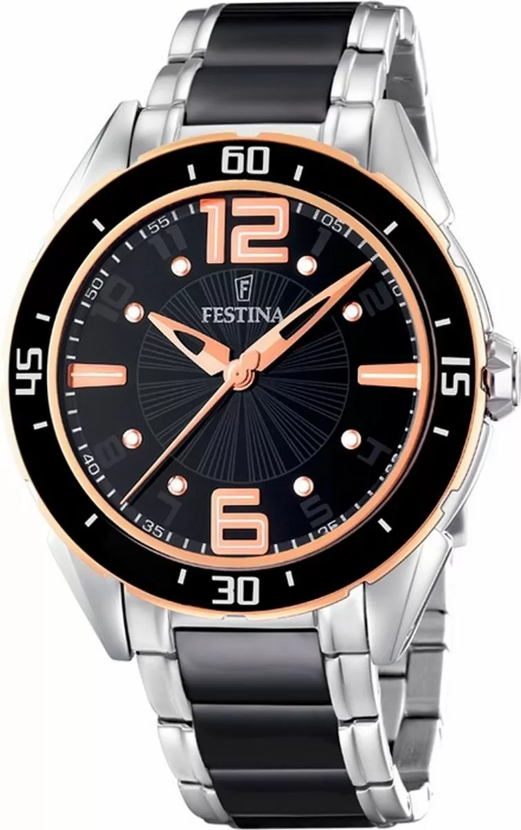 FESTINA F16396/2 Ceramic. Motto Festiny: 'Wysoka jakość zegarka za dobrą cenę' zostało wypracowane przez Miguela Rodriguez'a, ojca Festina Group. Miguel Rodriguez w swoich przedsięwzięciach podąża nieustannie za swoją wizją. 'Podaruj człowiekowi dobrą rzecz, na którą go stać'. Konsekwentne wdrażanie tej wizji gwarantuje sukces Grupy Festina. Festina Lotus S.A. należy nie tylko do wiodących firm w Hiszpanii, posiada również swoje oddziały w 80 krajach na całym świecie. Festina uważana jest za najszybciej rozwijającą się markę w branży zegarmistrzowskiej. W Polsce czy też Niemczech, zaliczana jest do 10 najbardziej znanych marek.