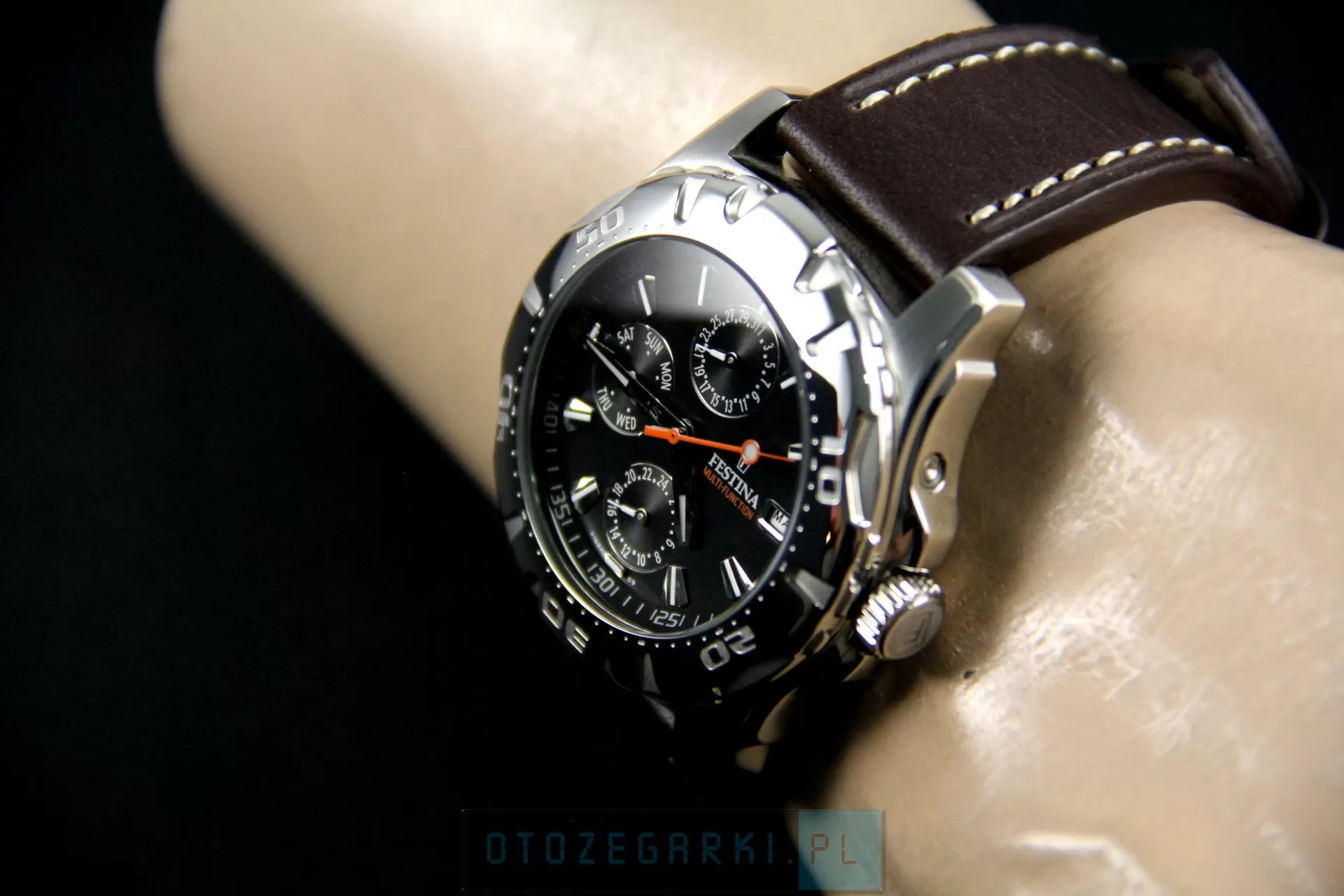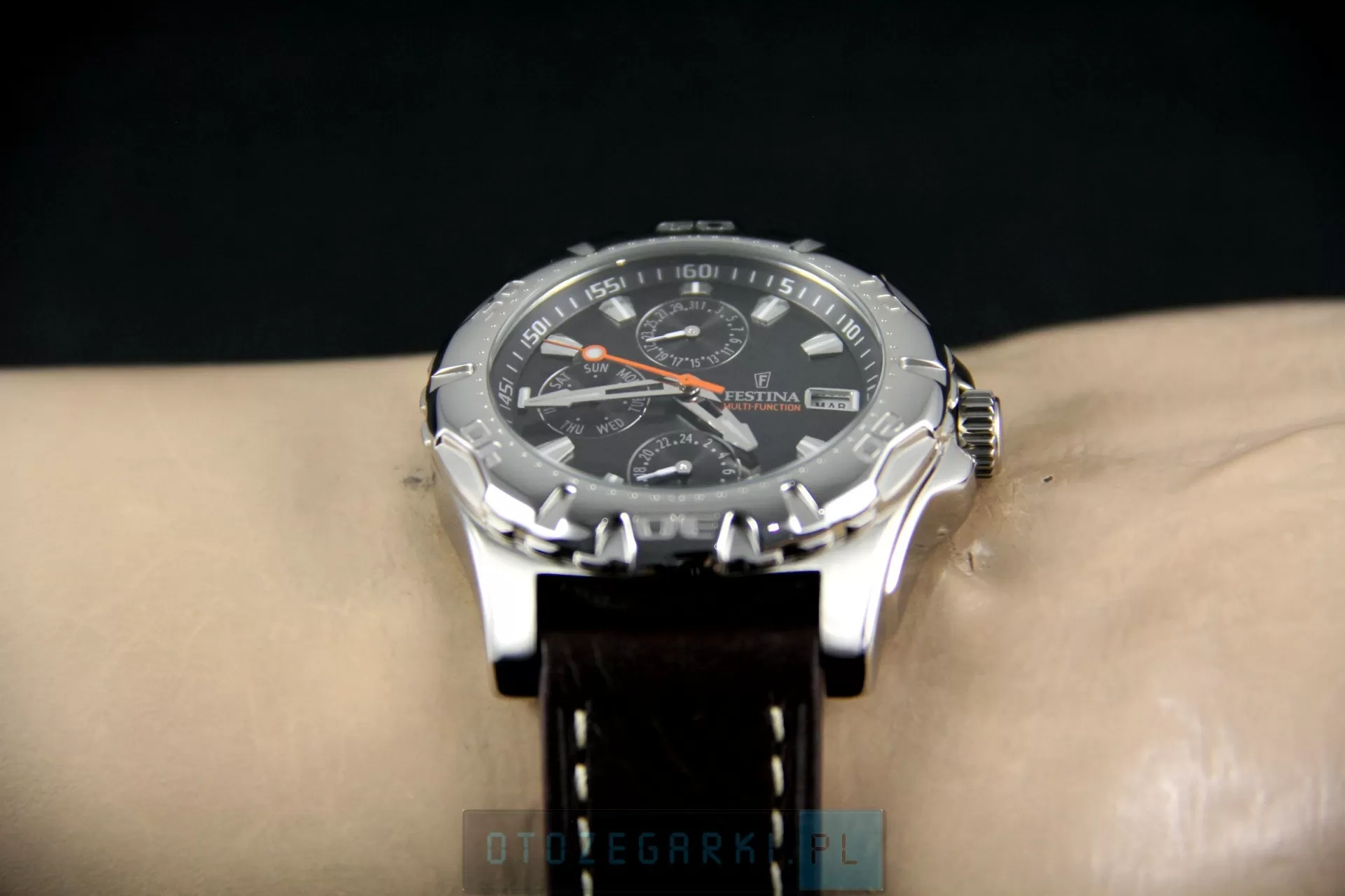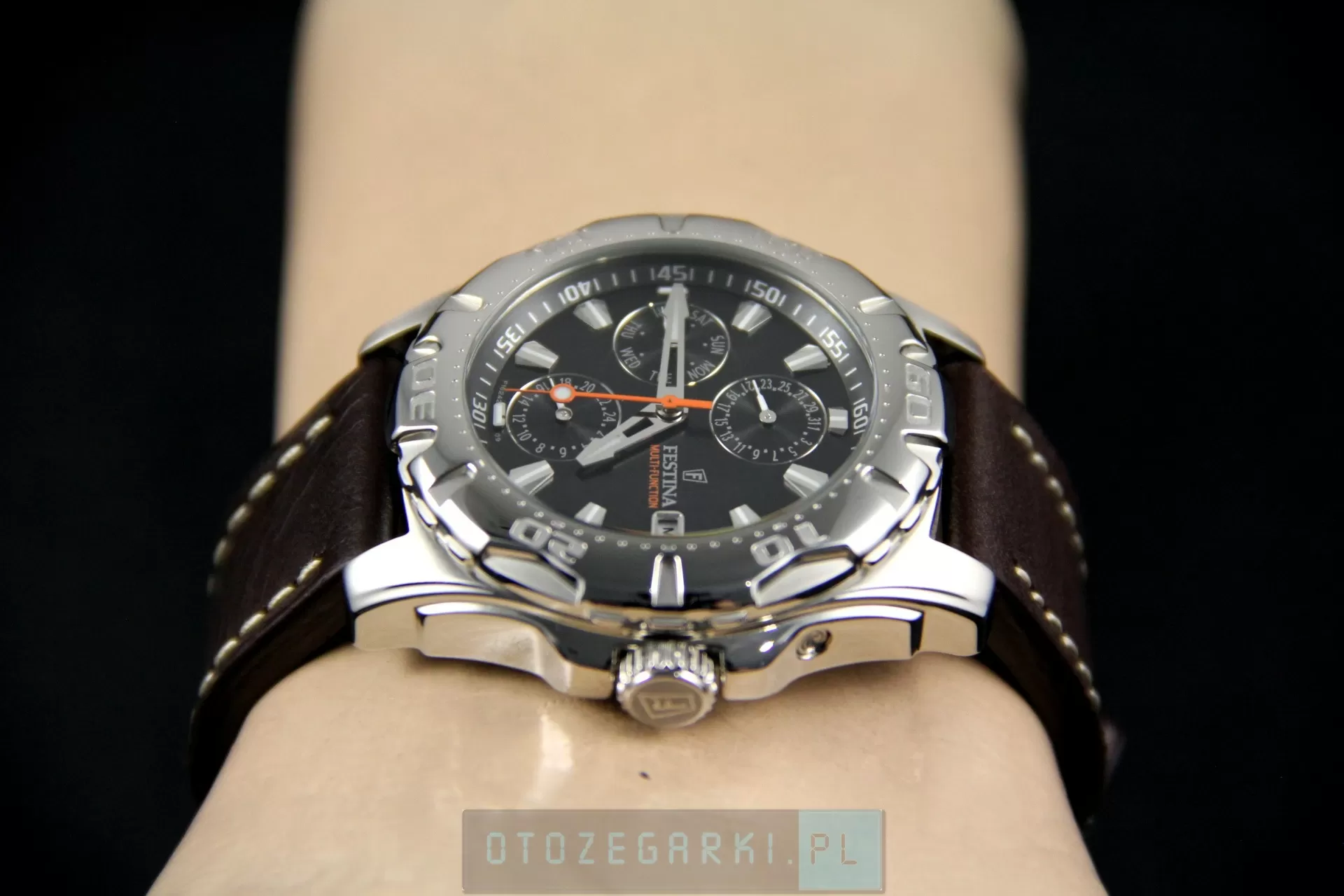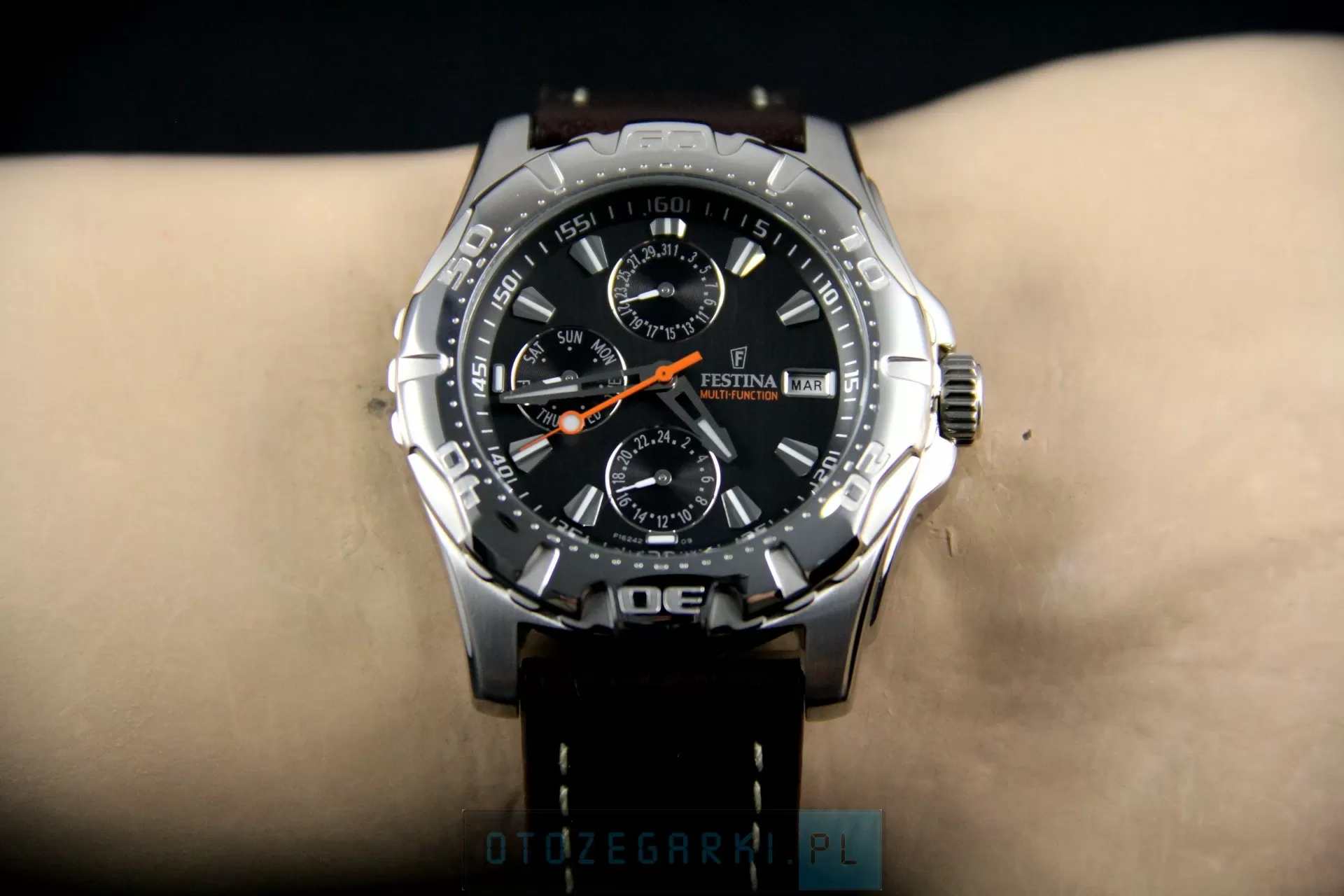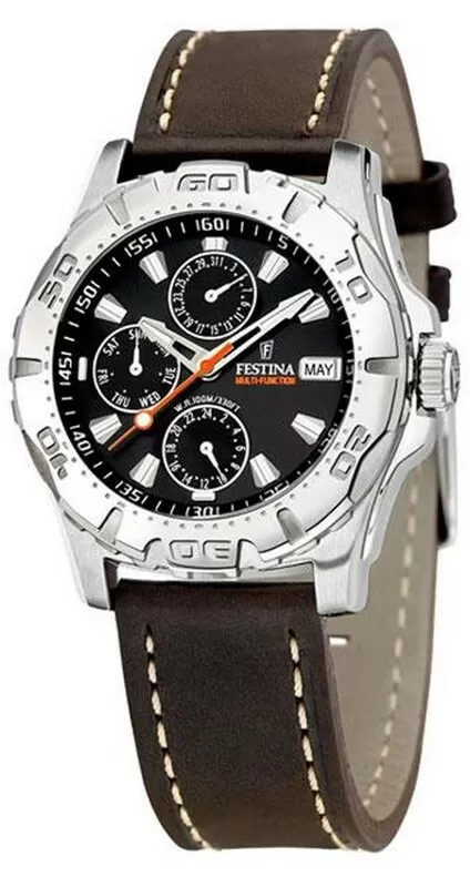 FESTINA F16243/8 Multifunction. Motto Festiny: 'Wysoka jakość zegarka za dobrą cenę' zostało wypracowane przez Miguela Rodriguez'a, ojca Festina Group. Miguel Rodriguez w swoich przedsięwzięciach podąża nieustannie za swoją wizją. 'Podaruj człowiekowi dobrą rzecz, na którą go stać'. Konsekwentne wdrażanie tej wizji gwarantuje sukces Grupy Festina. Festina Lotus S.A. należy nie tylko do wiodących firm w Hiszpanii, posiada również swoje oddziały w 80 krajach na całym świecie. Festina uważana jest za najszybciej rozwijającą się markę w branży zegarmistrzowskiej. W Polsce czy też Niemczech, zaliczana jest do 10 najbardziej znanych marek.