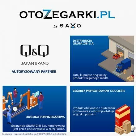 Dla marki Q&Q liczy się nie tylko jakość, lecz także styl i design oferowanych czasomierzy. Wśród setek dostępnych modeli znajdziemy w zasadzie przedstawiciela każdego stylu – od tych klasycznych, poprzez sportowe, aż na modowych kończąc. Większość z nich konkuruje jakością i stylem ze znacznie droższymi zegarkami Casio i w wielu z tych pojedynków marka Q&Q wygrywa, głównie dzięki znakomitej relacji ceny do jakości. W ofercie Q&Q znajdują się m.in. eleganckie zegarki z minimalistyczną tarczą, na której znajdują się jedynie wąskie indeksy bez cyfr, a także modele stricte sportowe wykonane z tworzyw sztucznych. Koniecznie zamów już dziś jeden z zegarków męskich Q&Q i skorzystaj z błyskawicznej dostawy i pomocy na każdym etapie zamówienia.