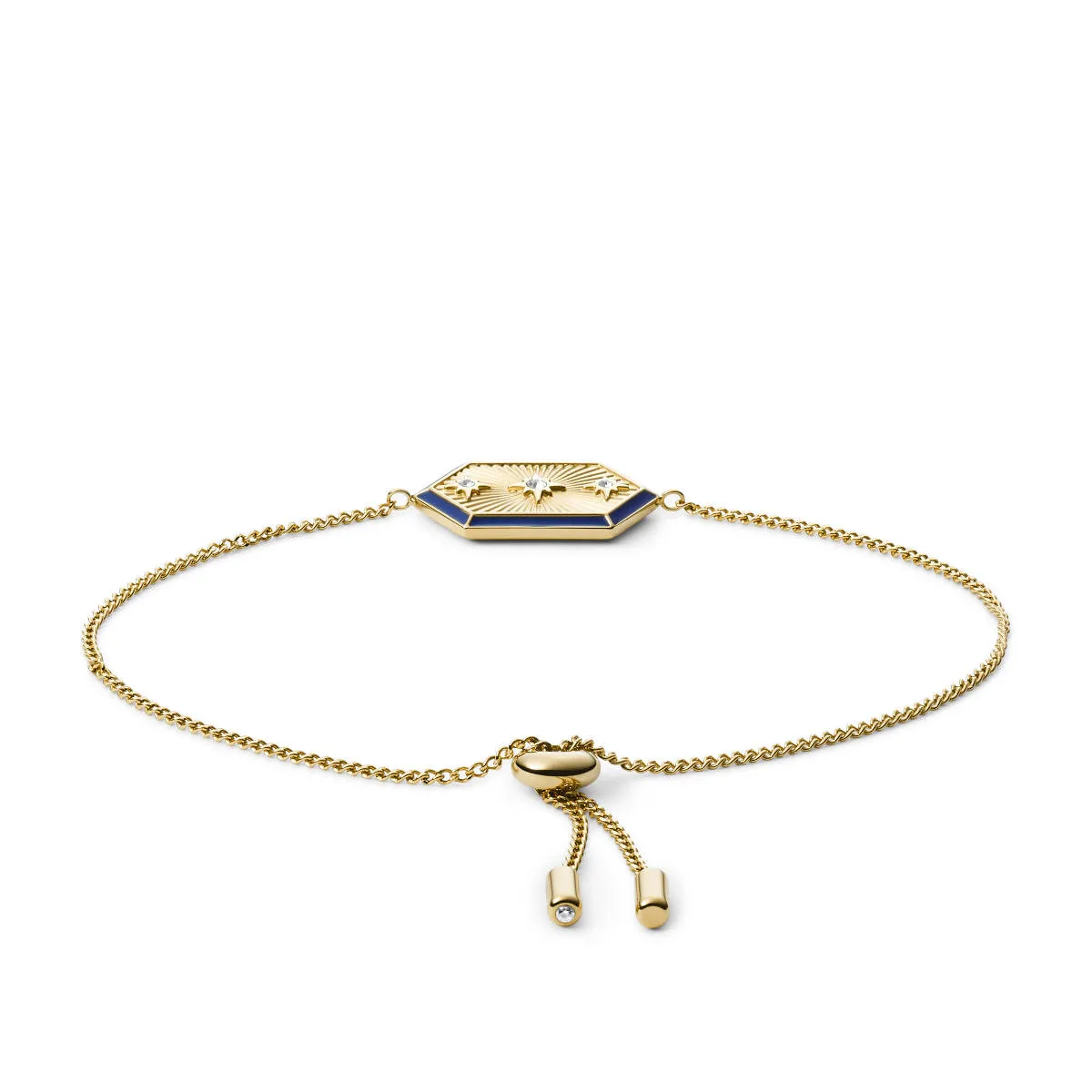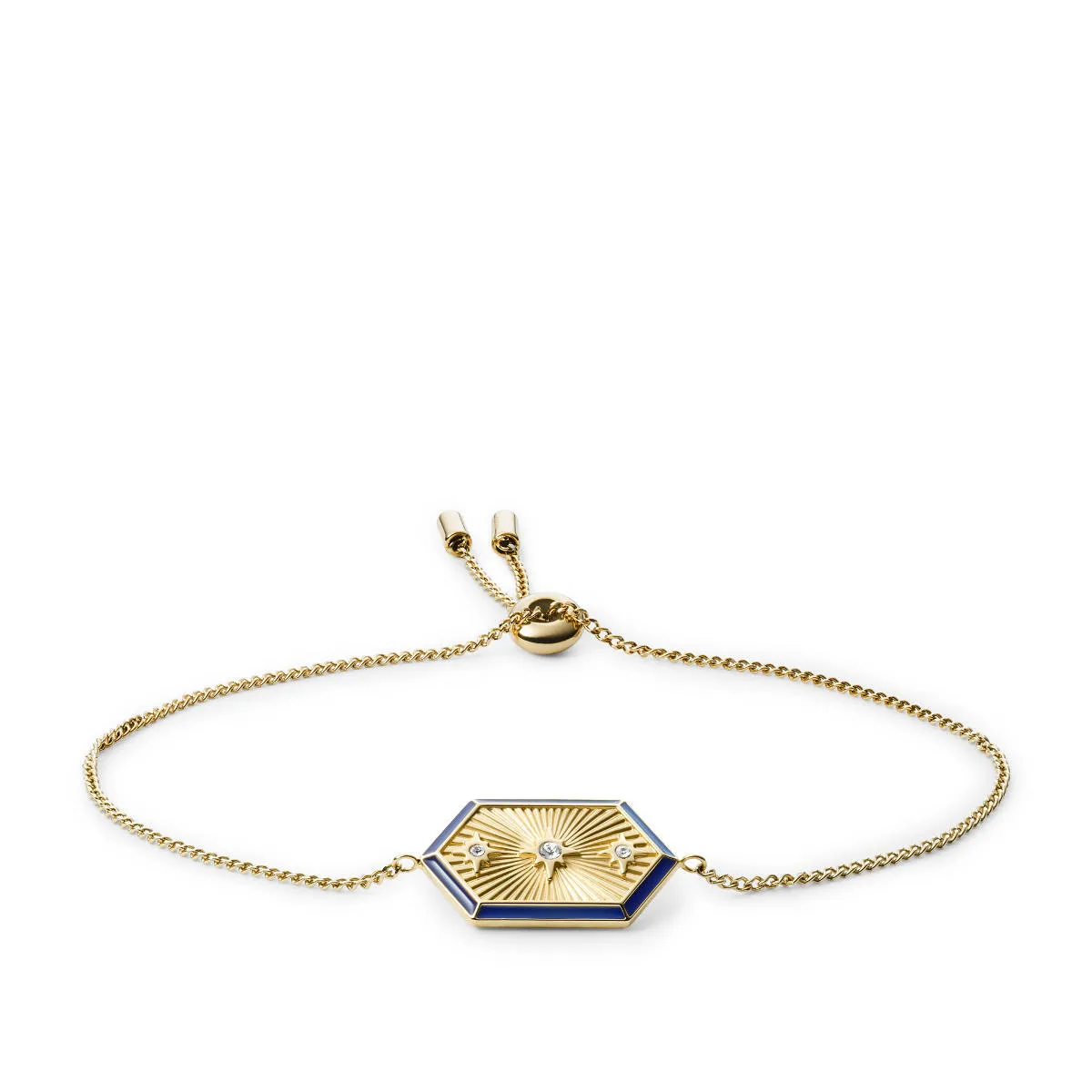 Złota bransoletka Fossil regulowana z kryształkami JF03572710