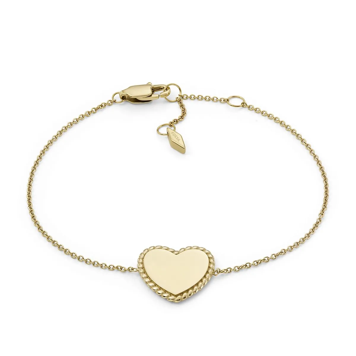 Damska bransoletka Fossil JF04361710 z ozdobnymi elementami w kształcie serca, w złotym odcieniu, to idealny przykład biżuterii o modnym i nowoczesnym charakterze, nawiązującej delikatnie do stylu vintage. Biżuteria Fossil to część kolekcji oferowanej przez jedną z najbardziej znanych amerykańskich marek, która kieruje swoje produkty dla zarówno kobiet, jak i mężczyzn w każdym wieku.