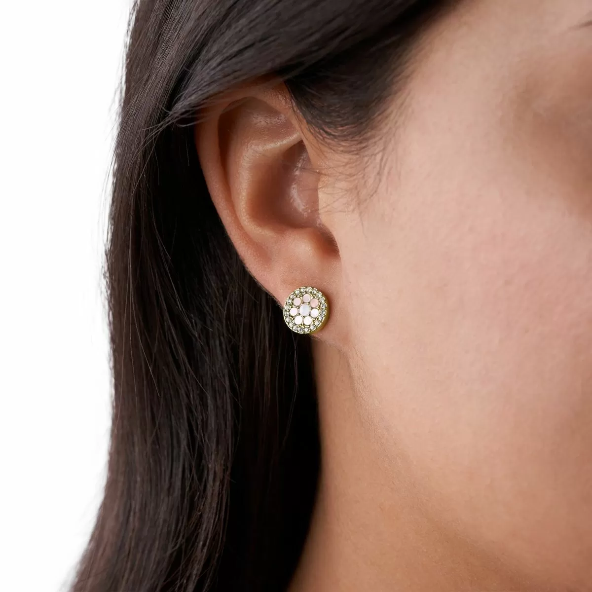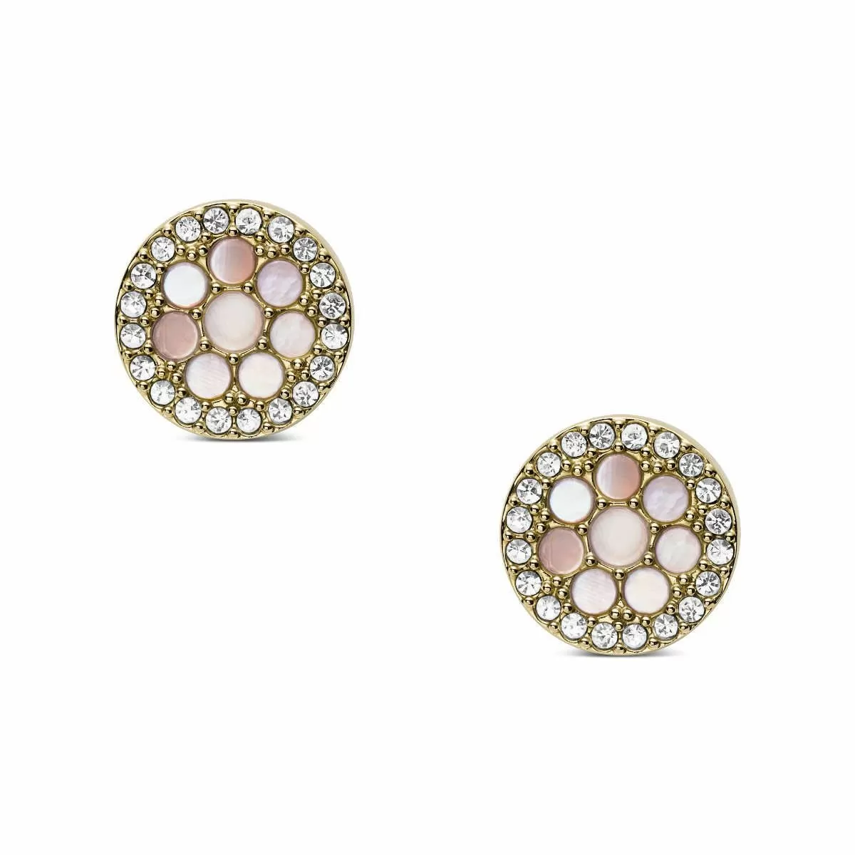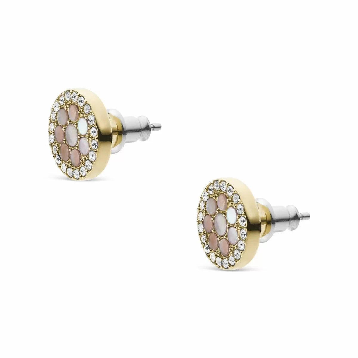 Złote kolczyki Fossil mozaika z kryształami JF03251710