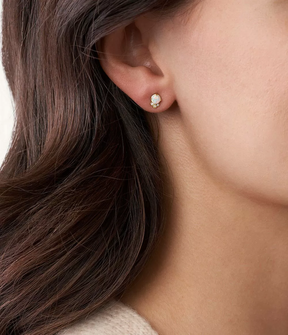 Damskie kolczyki wkrętki Fossil JF03876710 wykonane ze stali, na sztyfcie w centralnej części osadzono ozdobny kamień, opal i trzy kryształki. Delikatne i eleganckie jednocześnie. To idealny przykład biżuterii o modnym i nowoczesnym charakterze, nawiązującej delikatnie do stylu vintage. Biżuteria Fossil to część kolekcji oferowanej przez jedną z najbardziej znanych amerykańskich marek, która kieruje swoje produkty dla zarówno kobiet, jak i mężczyzn w każdym wieku.