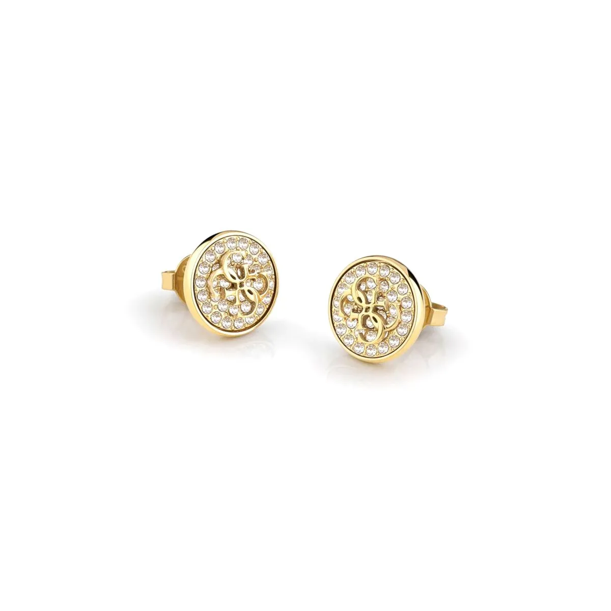 Złote kolczyki Guess monety z kryształami i logiem 4G