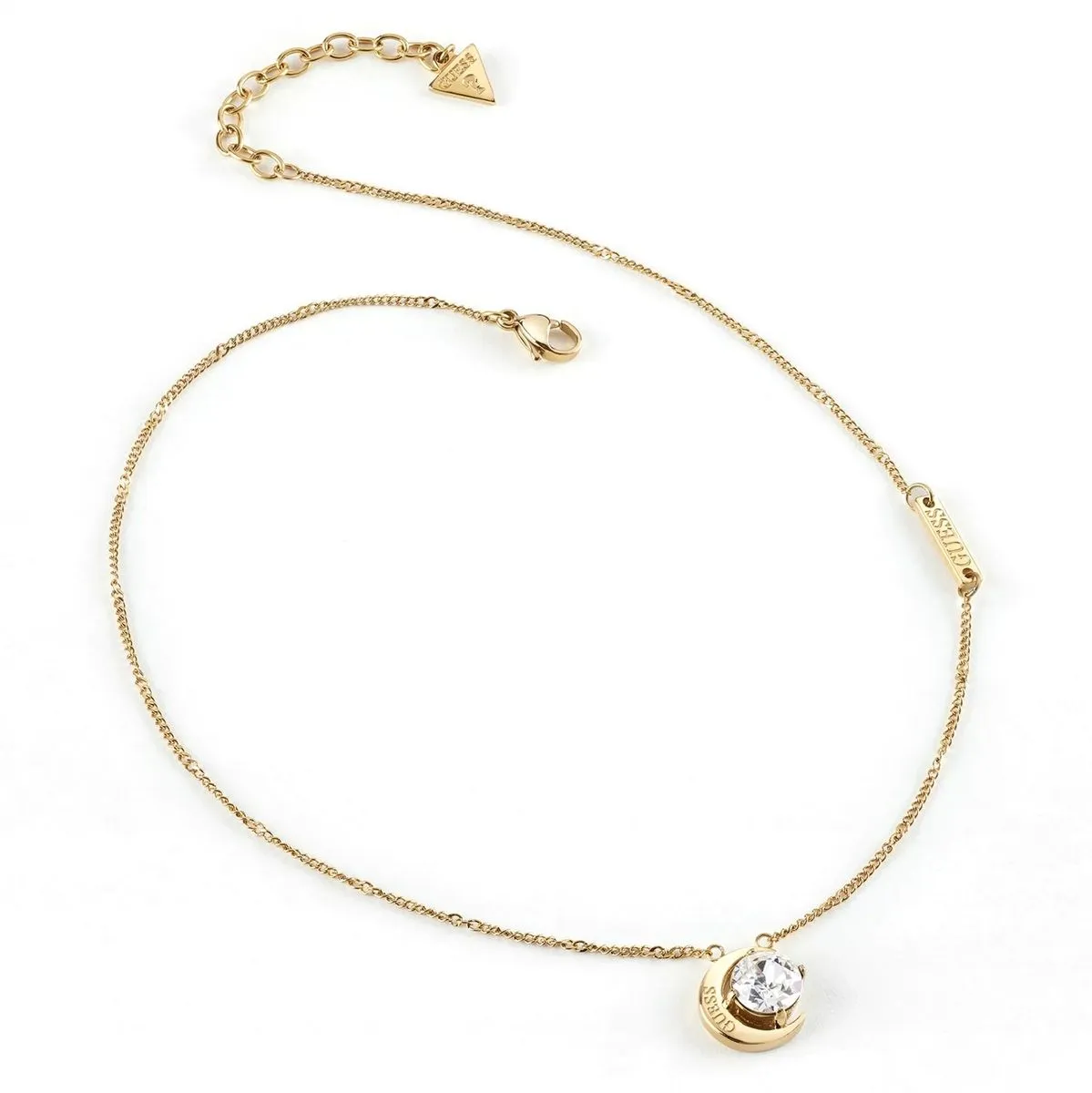 Złoty naszyjnik Guess z księżycem i kryształem GUESS MOON PHASES JUBN01190JW