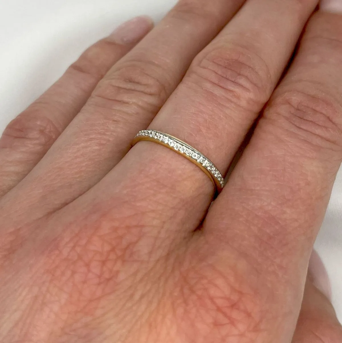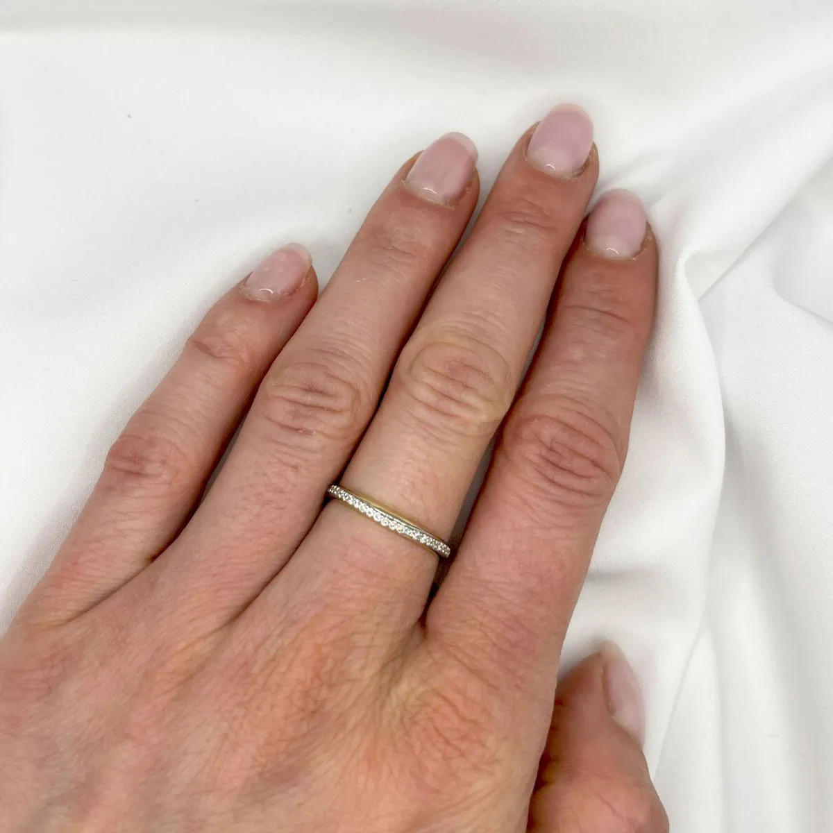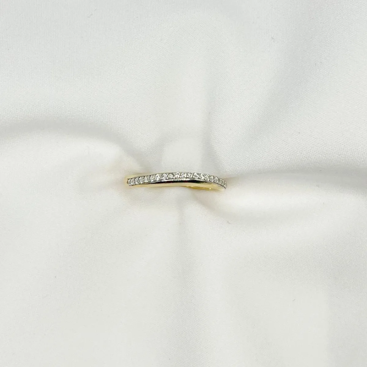 Ozdobny pierścionek, wąska szyna z delikatną kryształową falą. Idealny na pierścionek w ramach prezentu na każdą okazję. Jest to piękny wzór, delikatny i subtelny, który prezentuje się bardzo wytwornie i w wyrafinowany sposób podkreśla charater swojej właścicielki.