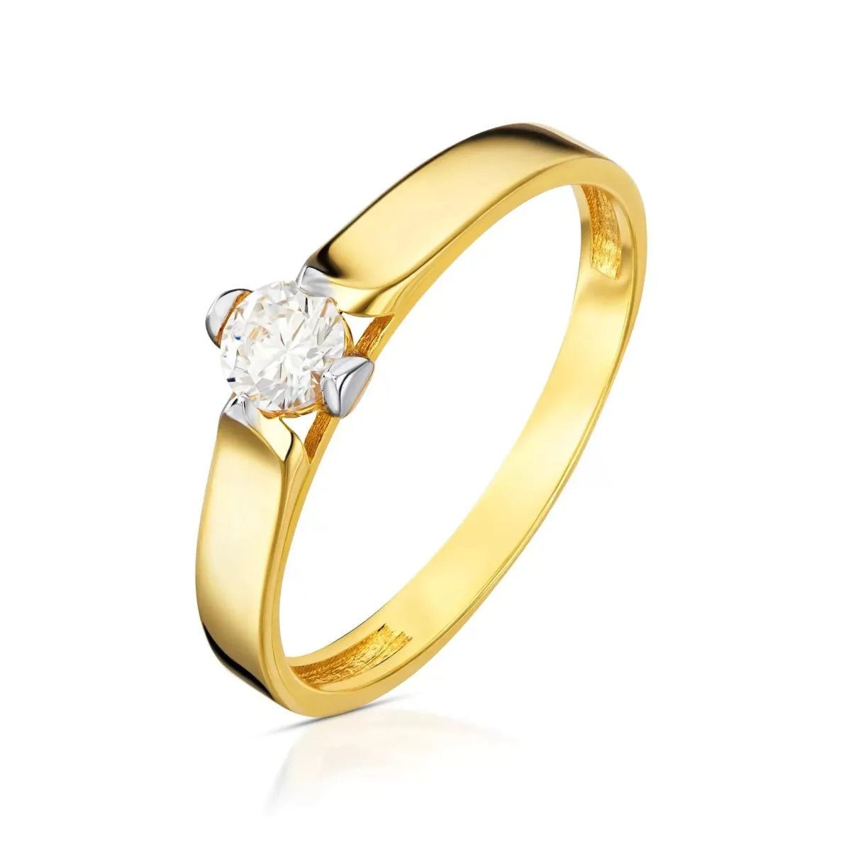 Złoty pierścionek zaręczynowy z błyszczącym kryształem r.14 • Złoto 333