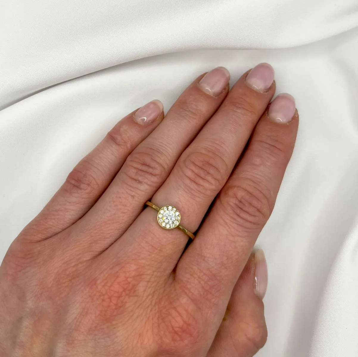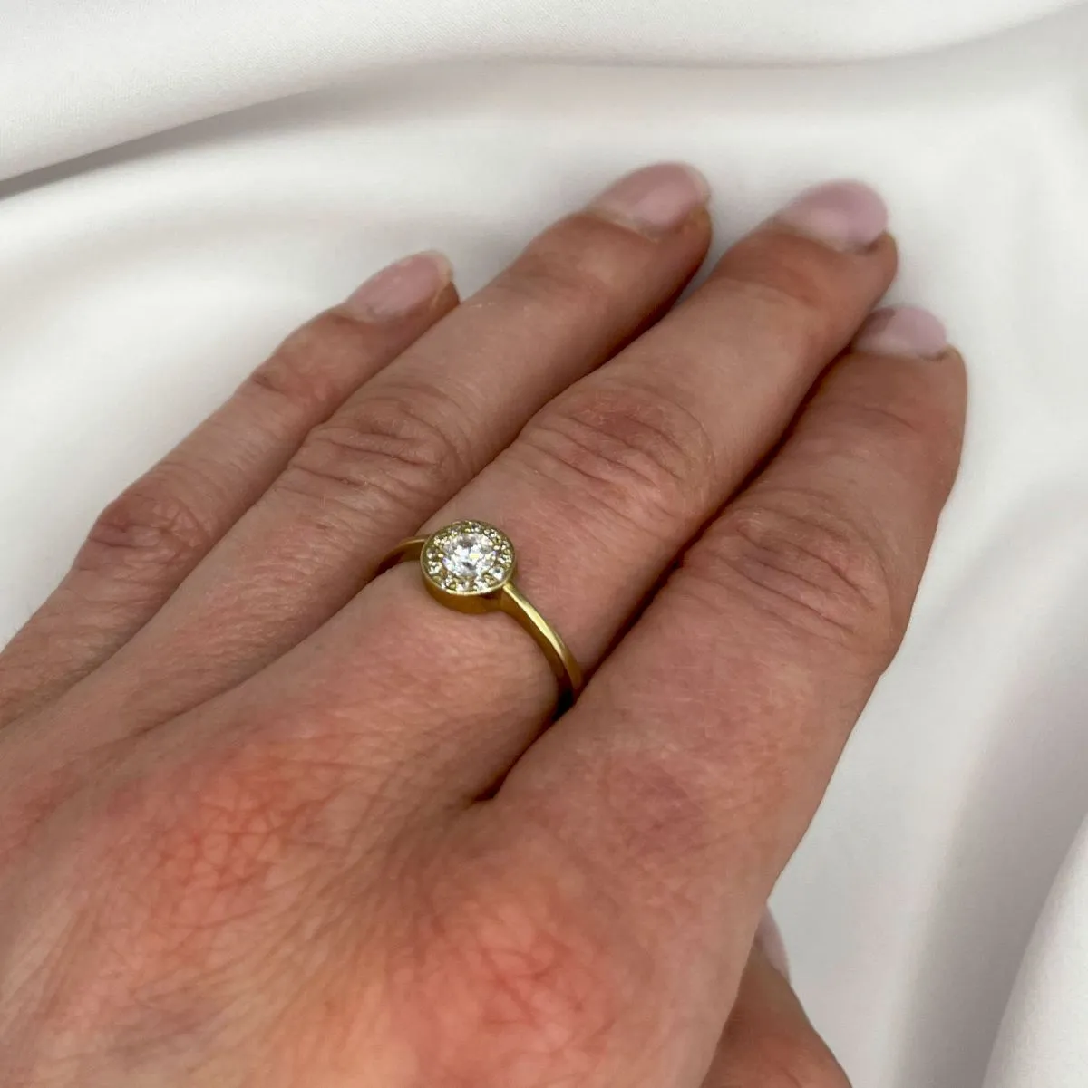Złoty pierścionek zaręczynowy z błyszczącymi cyrkoniami r.13 • Złoto 333