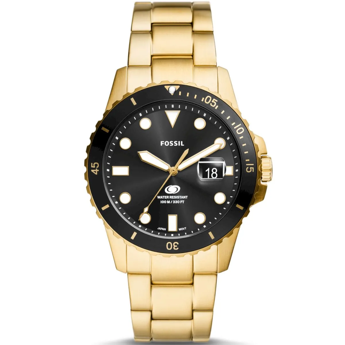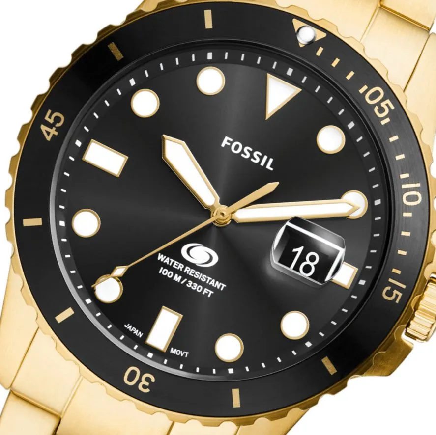 Złoty zegarek męski Fossil Blue czarna tarcza FS6035